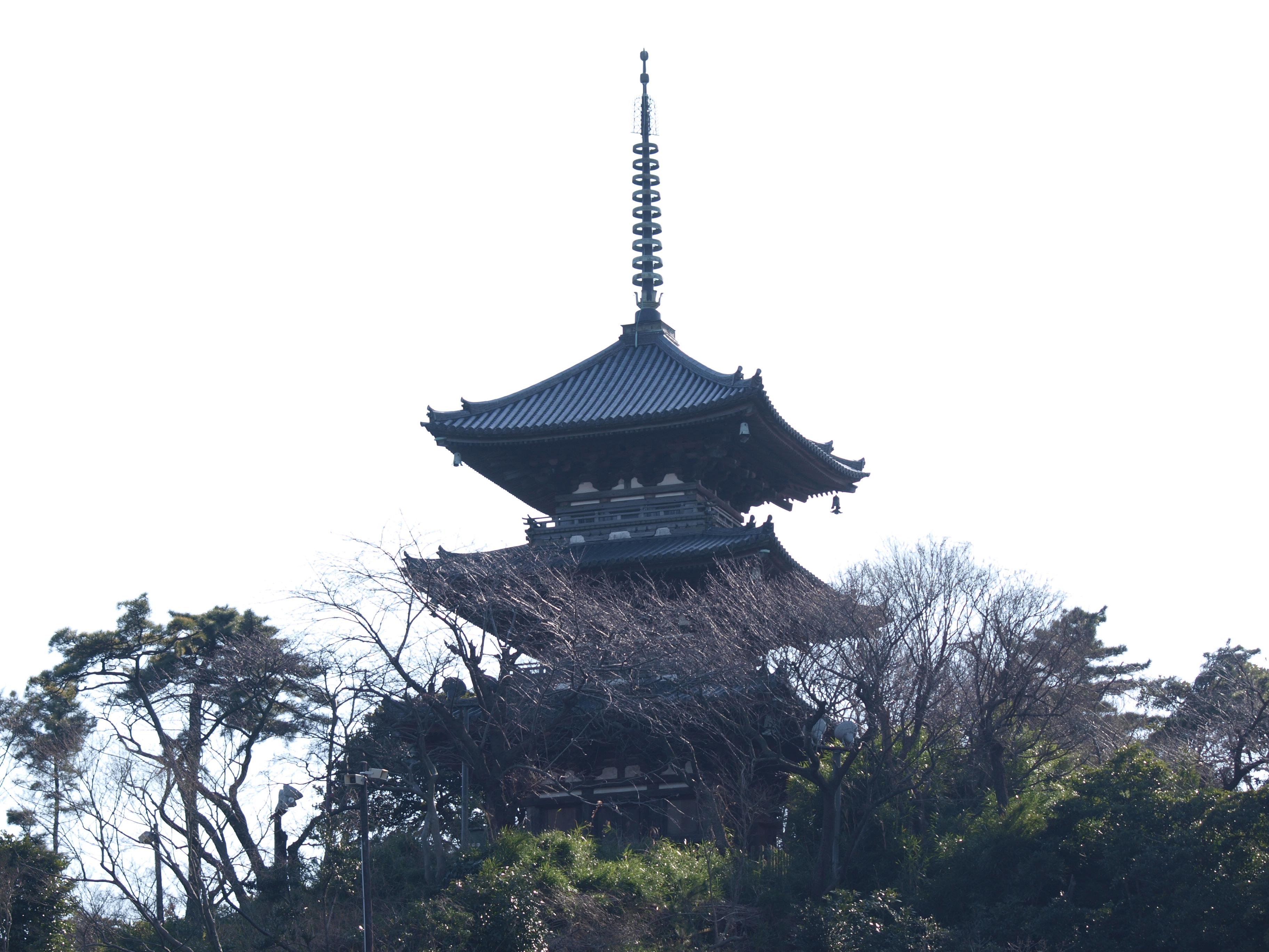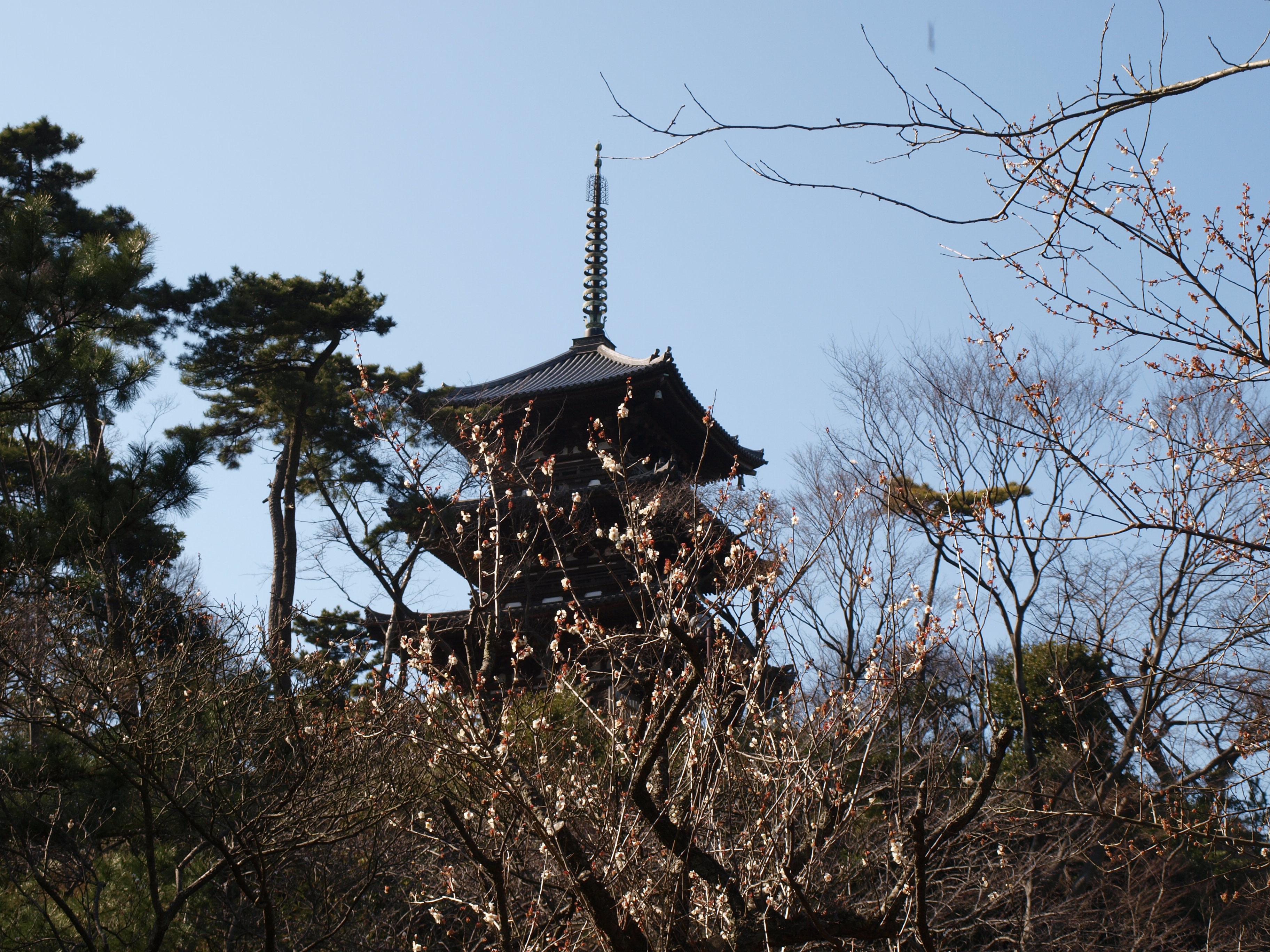 旧燈明寺三重塔。園のランドマークタワーとなっている。