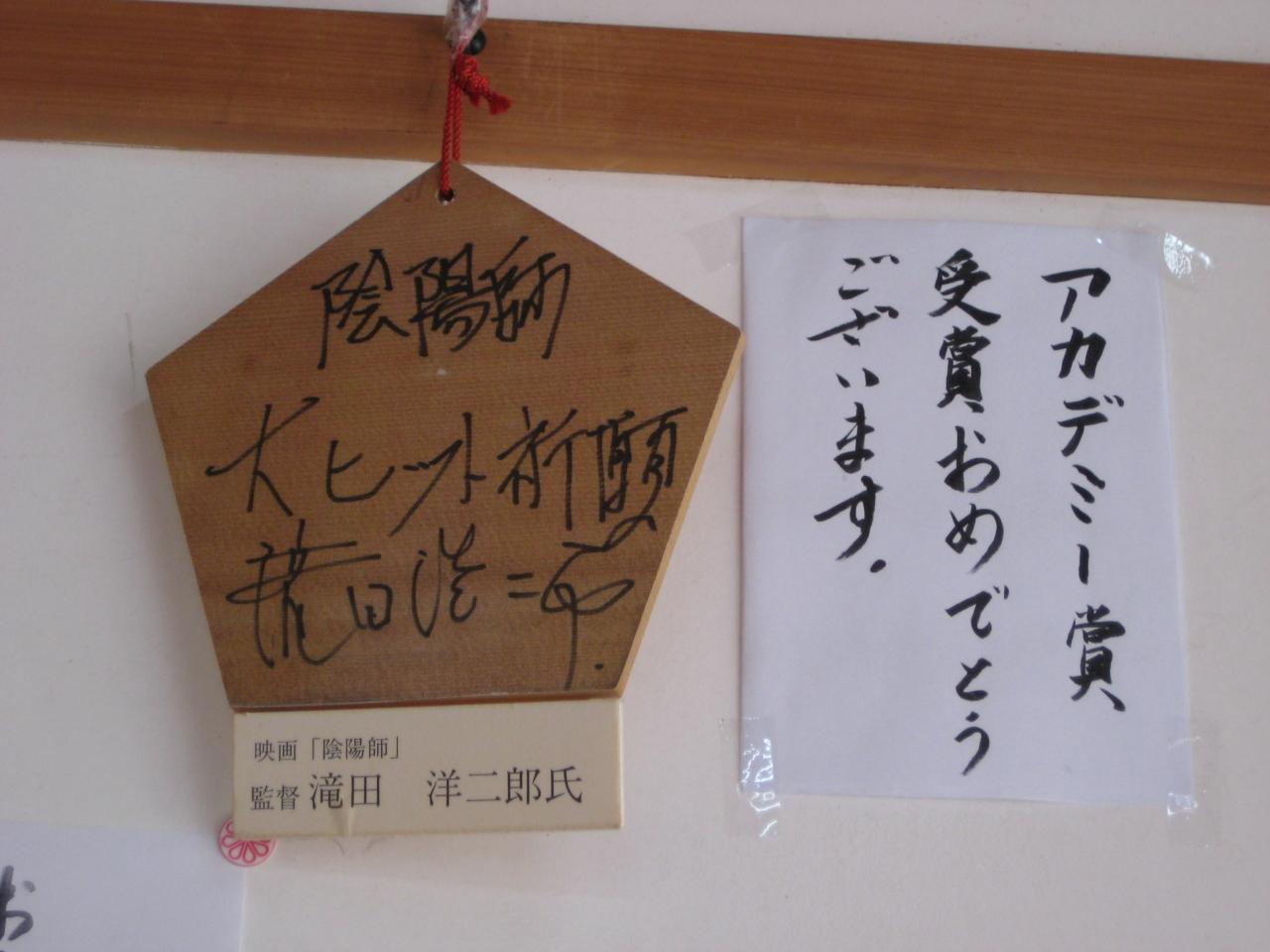 滝田洋二郎監督が陰陽師のヒット祈願に訪れていたようで…他にも芸能人の絵馬がたくさんありました。 -