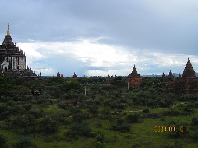 特に問題なくチェックインして、迎えに来てもらった馬車をチャーター。写真はシュエサンドーバゴダからみた虹のかかるバガン遺跡。