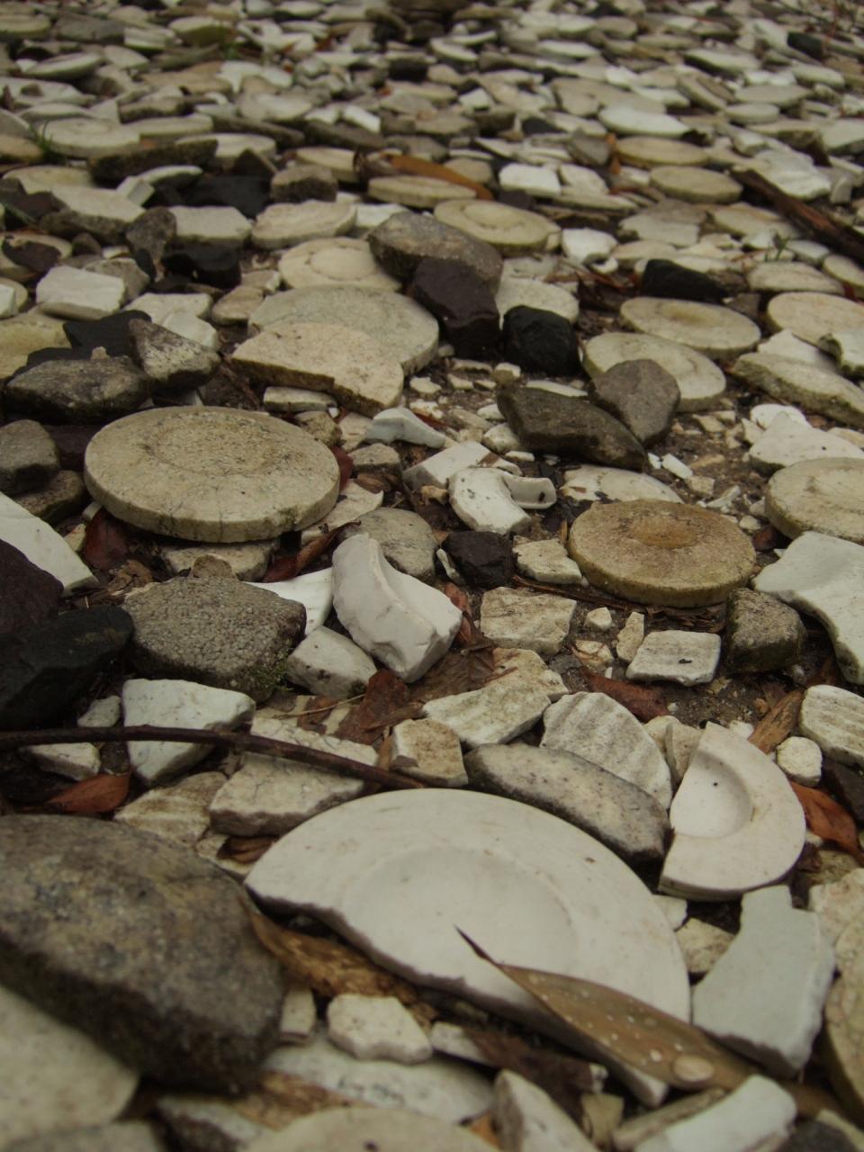 ちょっとした通路に失敗作の焼き物が敷き詰められていた。
