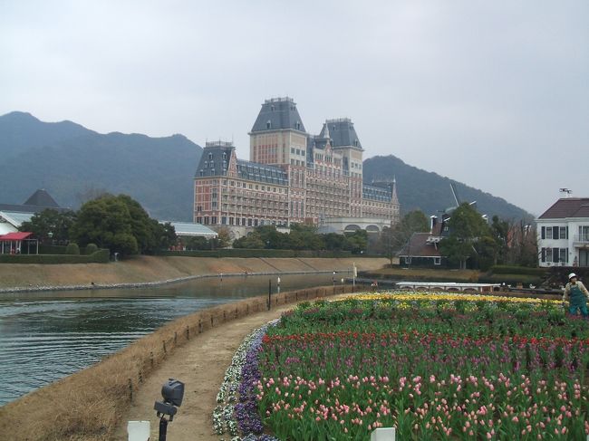 写真の奥に写っている大きな建物は「ハウステンボスJR全日空ホテル」です。 -