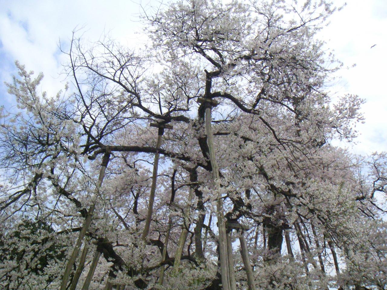 • 裏から見た、釜の越桜。<br />枝には支え棒がされています。<br />お疲れ様ですね。