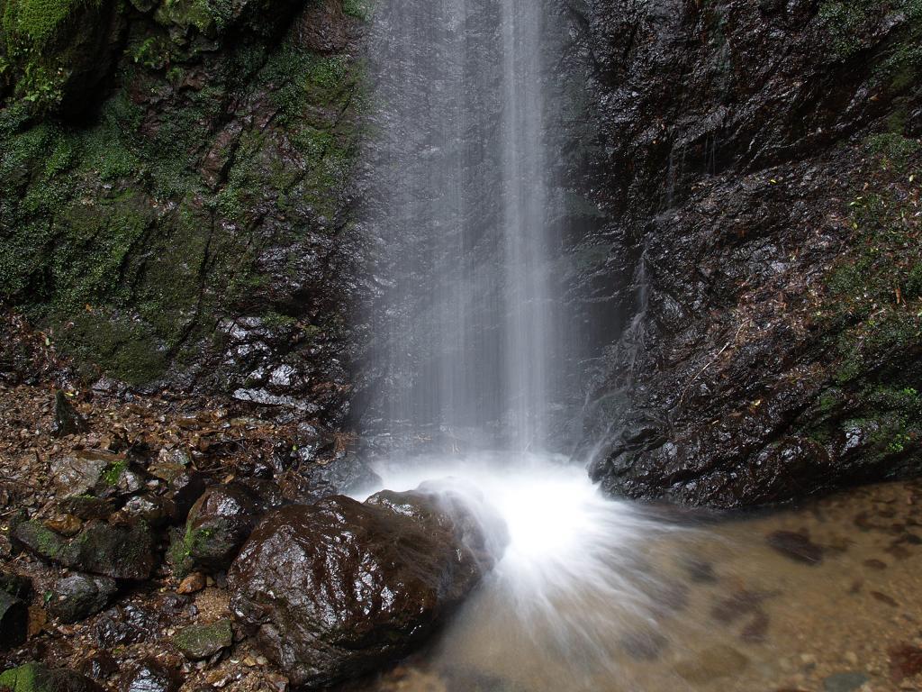 緩やかな登り坂を行くとやがて牛妻不動の滝の姿が見えます。私としては、小ぶりながら好きなタイプの滝です。