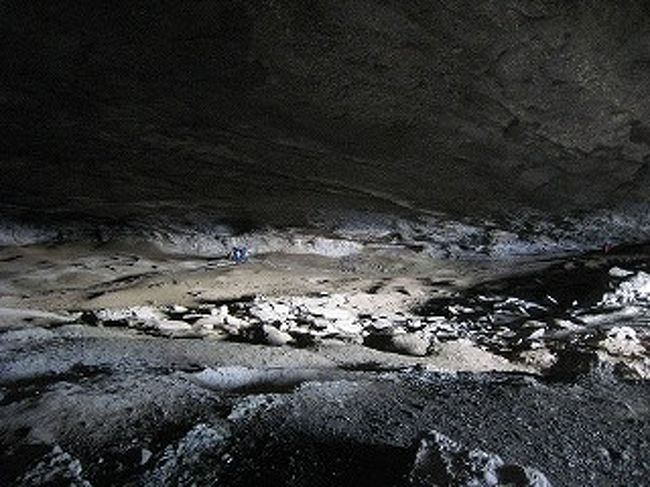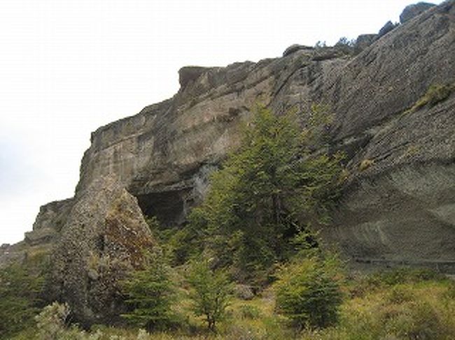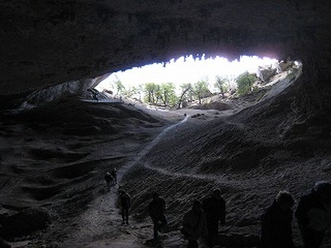 ここはミロドンの洞窟です。1万年前に絶滅したミロドンというナマケモノににた体長3mもの動物の骨が発見された場所です。