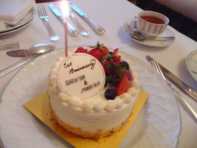 ホテルに予約していたアニバーサリーケーキをルームサービスで持ってきてもらいました。