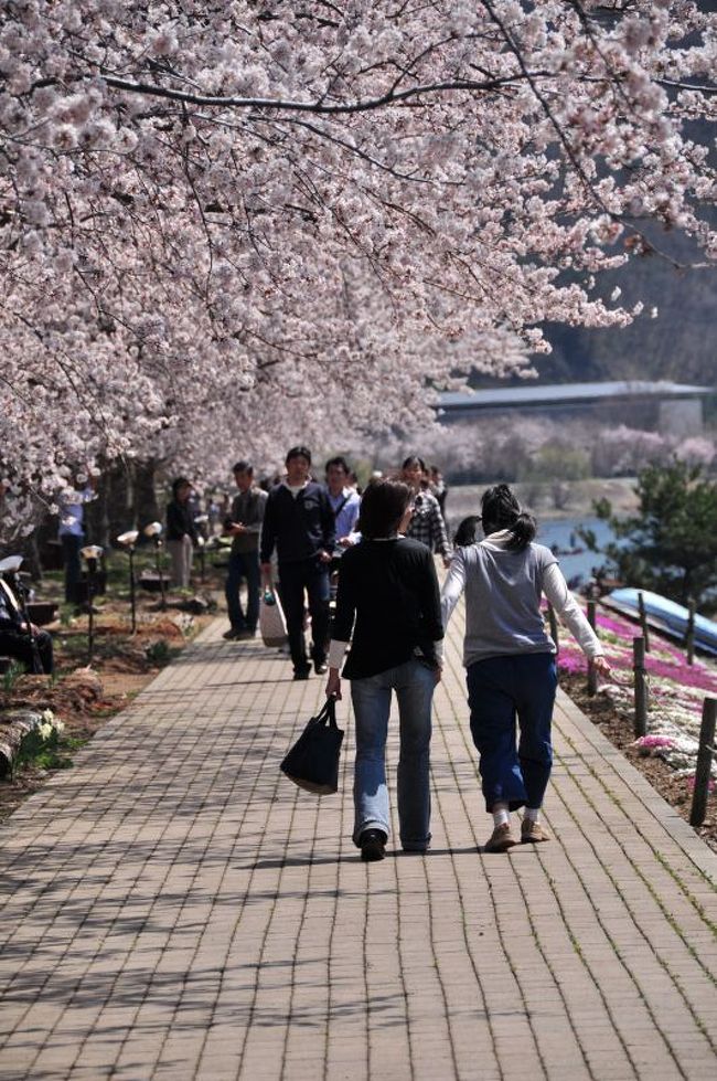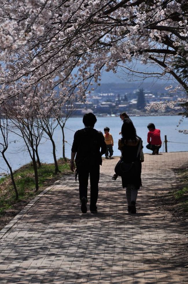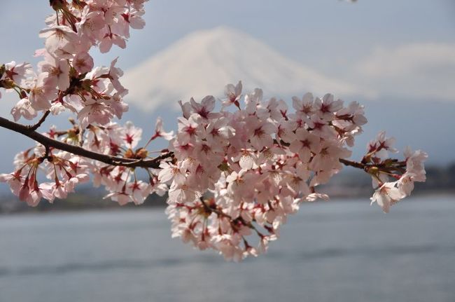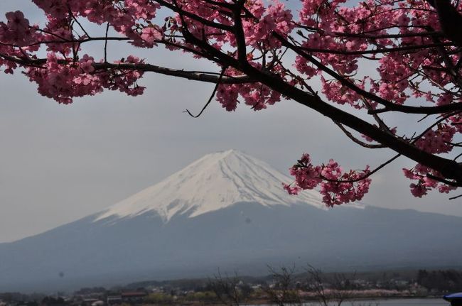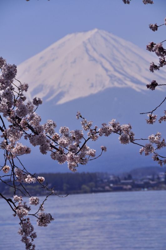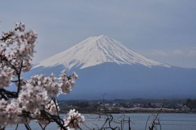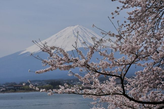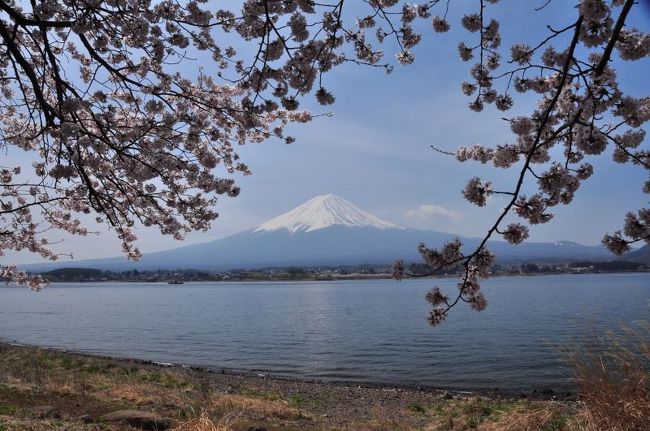 白糸の滝.下馬桜をみたあとは今回予定していた河口湖に一路向かう.静岡側から一気に田貫湖を左手に抜け山梨県に入る.途中渋滞を予想して西湖を迂回しながら河口湖湖畔を目指した.途中満開のときには綺麗だっただろう完全に初夏を思わせる力強い葉を見せる桜木を幾重にも通り過ぎ少し不安がよぎる.天気は最高しかし最高過ぎて桜終わってないかな...そんな心配を他所に川崎近くになるにつれ遠く色付く桜色が湖畔を飾る.遠目で見ても満開なのが見える.目的は河口湖北岸長崎公園.桜は満開 そしてその満開の桜の間から見える雲一つないまだ雪を被った富士山.まさにニッポンに生まれてきてよかったと感じた時だった