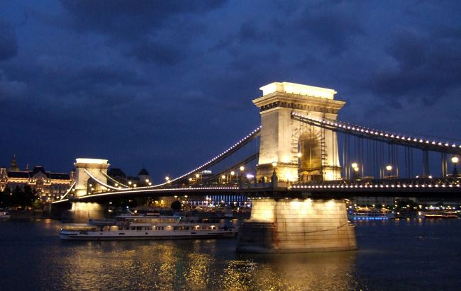夕食後、城バスでモスクワ広場に下り、メトロM2で国会議事堂前に抜けました。そこからドナウ河畔東岸(ペスト側)をぶらぶらとくさり橋まで散歩。