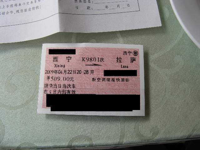 食事後に青蔵鉄道のチケットと健康意思カードといいますか、誓約書のようなものを書く。