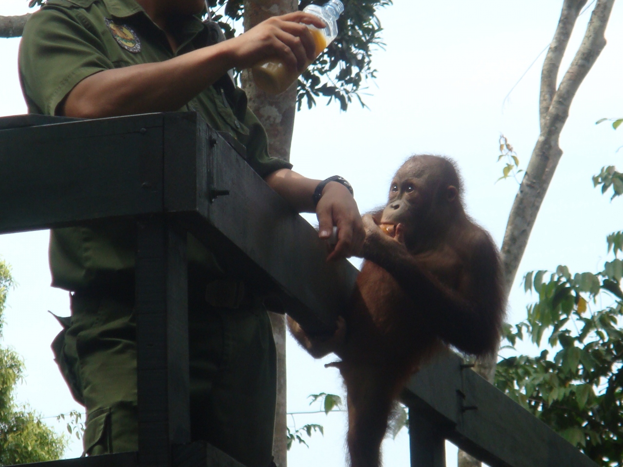 このオラウータン触れると勝手に思っていましたが、触れることも出来ません。自然に帰すということもあると思いますが、人間と近いため、人間の病気もうつってしまうとのこと(DNAが96.5%人間と同じとのことです)参考までに・・・