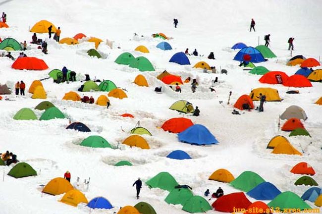 白銀の中に色とりどりのテントがインパクトありましたよ〜
