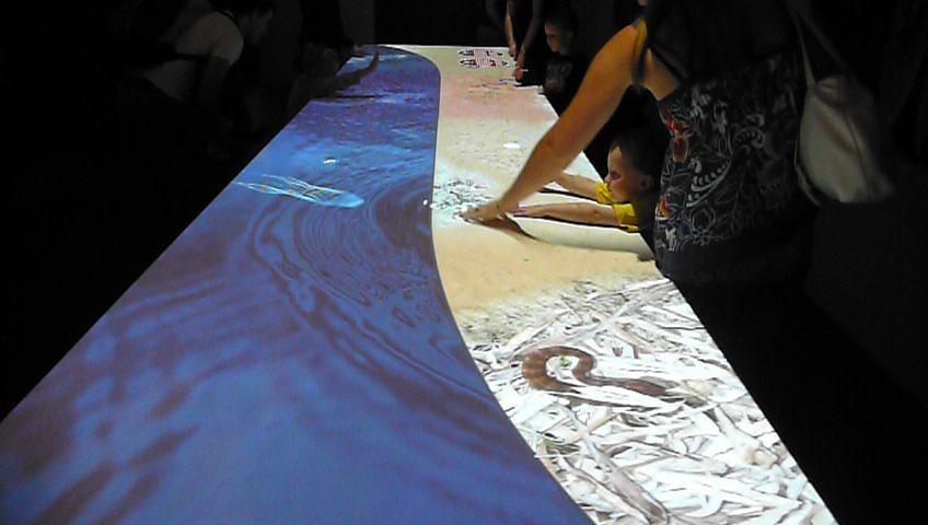 これがインタラクティブで自分がタッチしたところに反応してくれるのです。たぶん天井にセンサーもあってそれで瞬時に画像を変えていると思います。