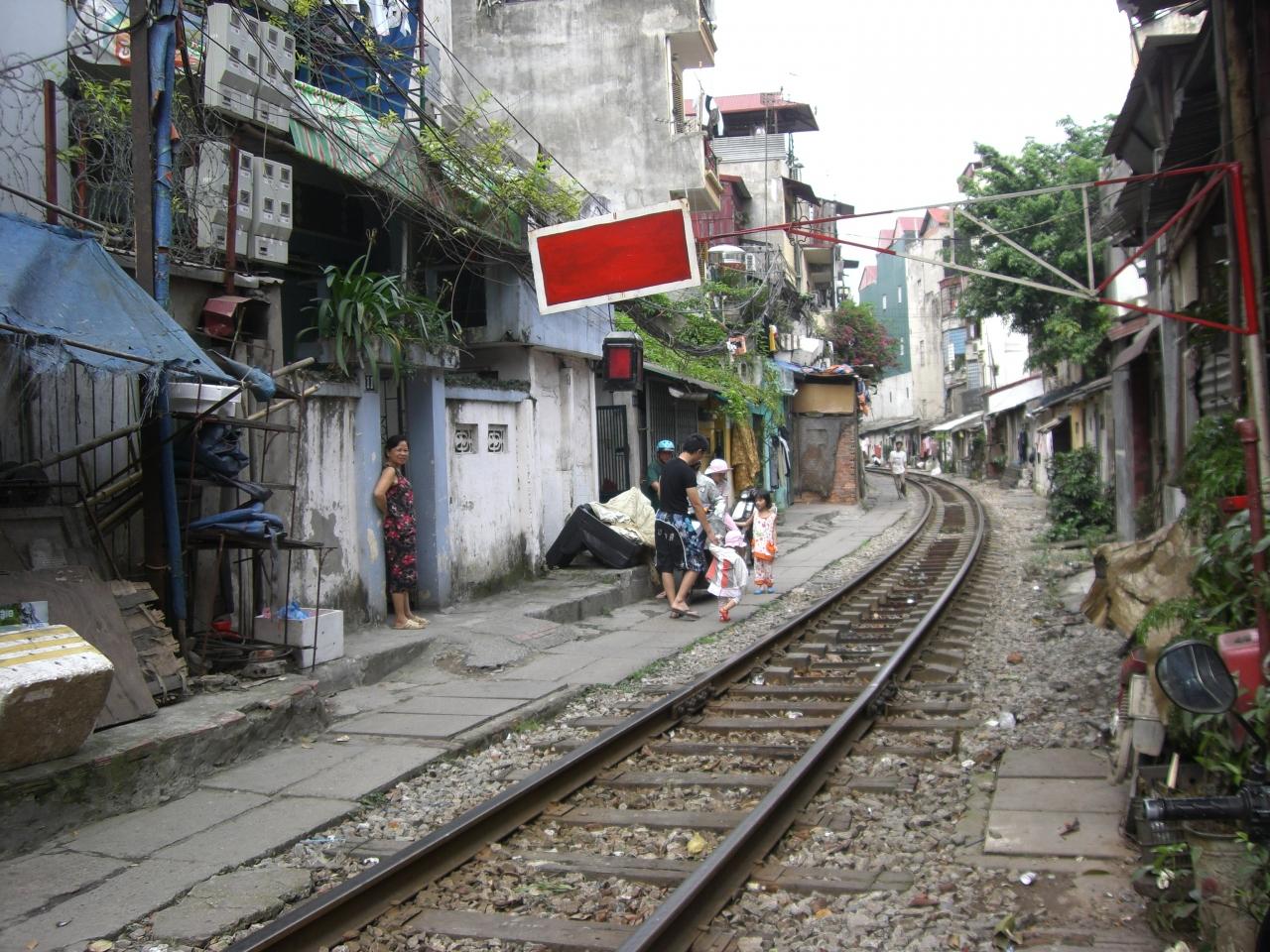 チャンフー通りを徒歩で進むと踏切りが現れます。生活している人にとっては線路も大事な生活道路のようです。