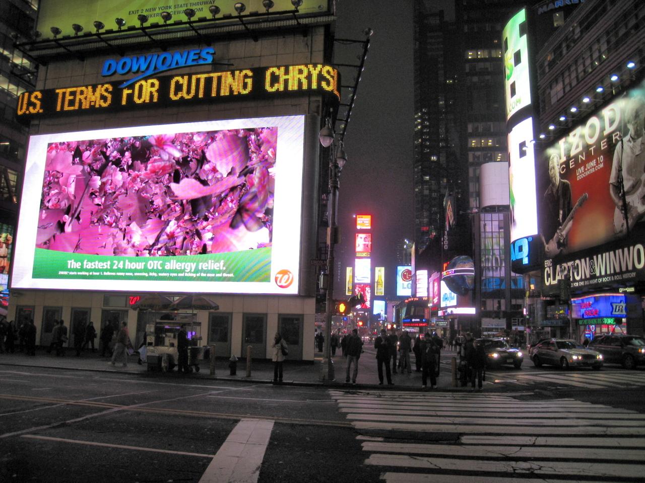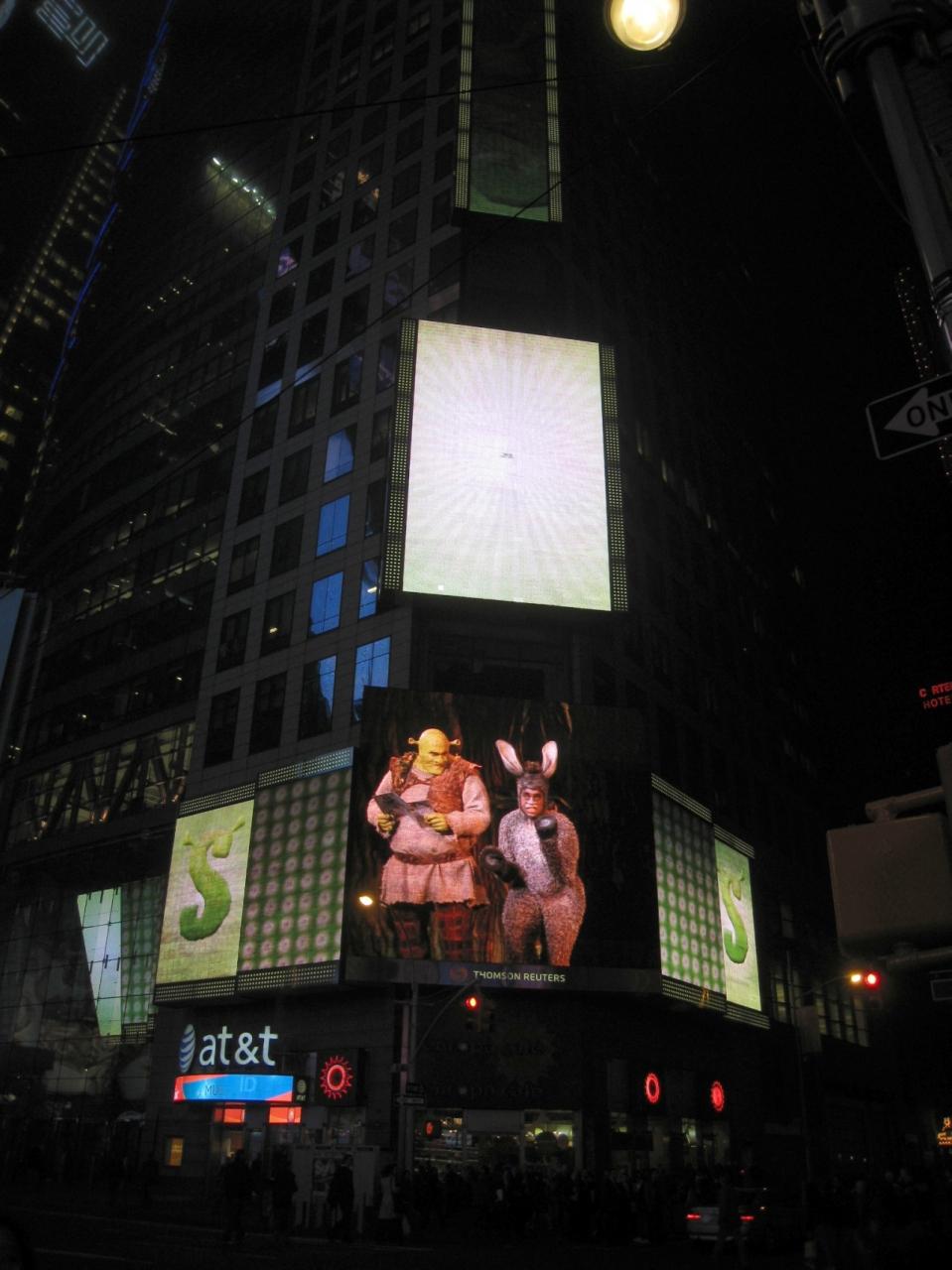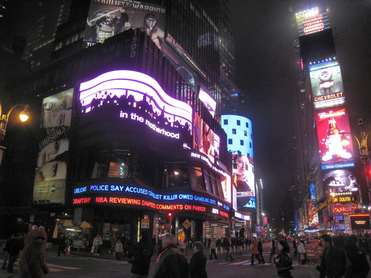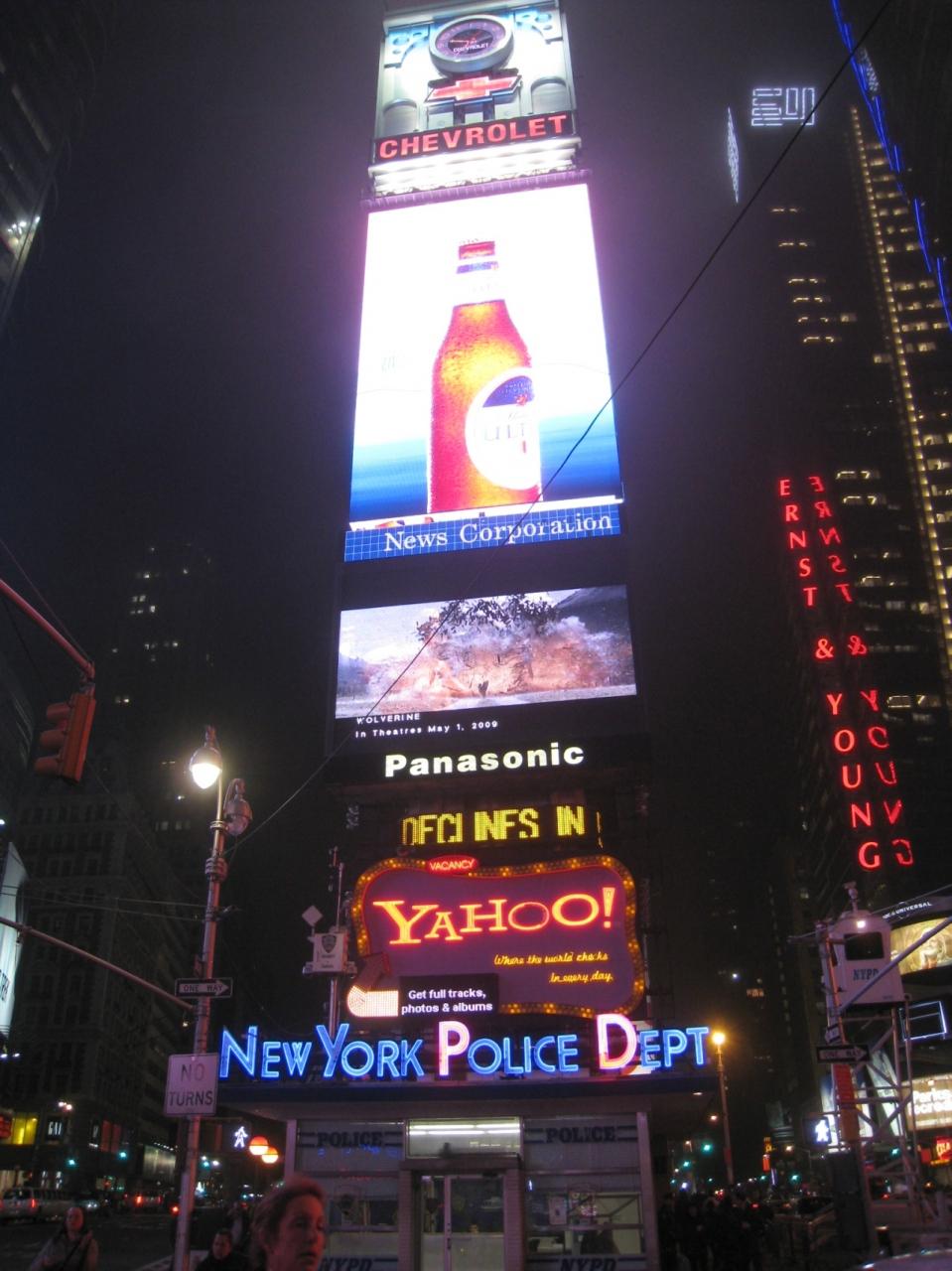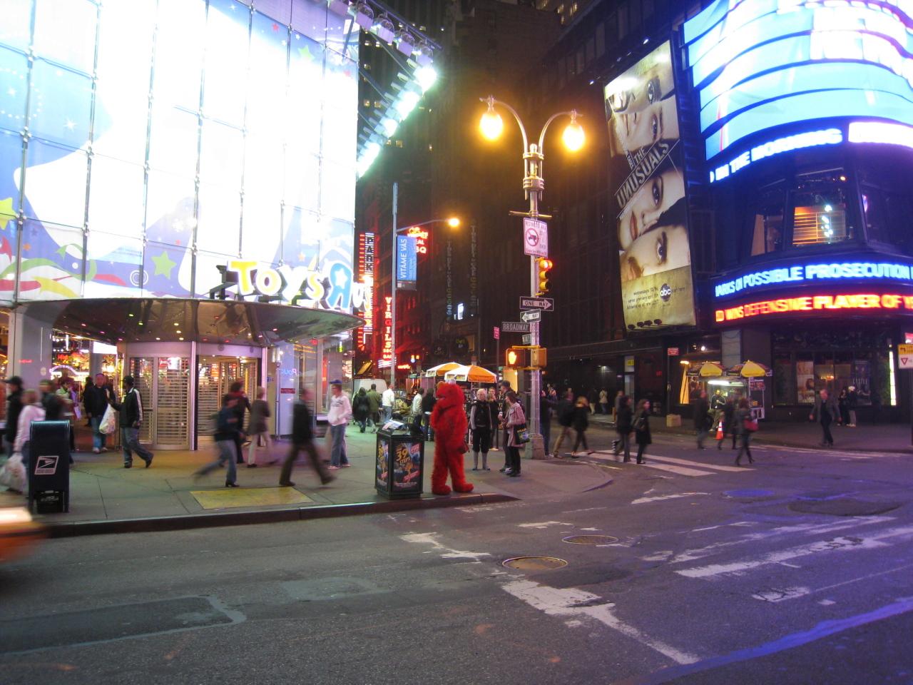 娘と別れて、ホテルに戻る途中のタイムズスクエア−のショ−ウィンドのディスプレイ、Tシャッがずら-っと並んでまるでTシャッの行進みたい。奇抜だな〜