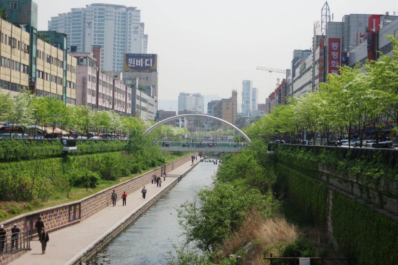 これで清渓川(チョンゲチョン)とはいったんお別れです。清流が甦った清渓川には魚や昆虫等の種類も増えたようです。何より散策する人が増えました。