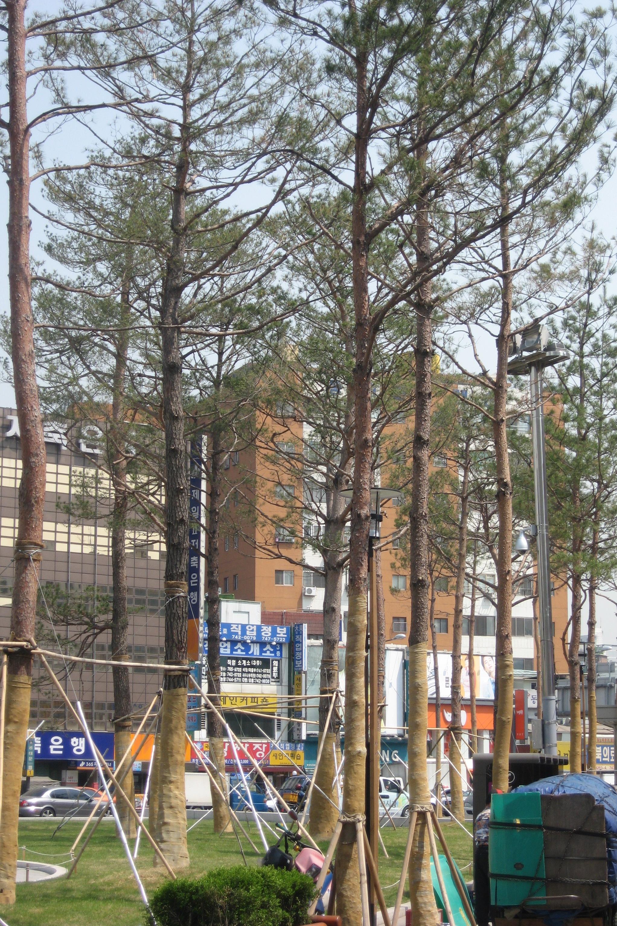 昨年見学した時には見かけなかった赤松です。東大門の周囲が公園として整備されたために植林されたようです。