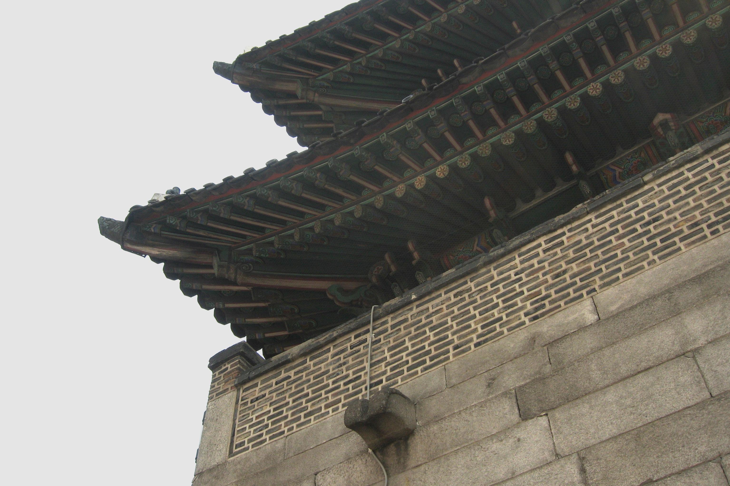 東大門の楼閣の側面のアップです。朝鮮時代の太祖5年(1396年)に創建され、その後の改修を経て、現在の門楼は高宗6年(1869年)に改修された姿です。