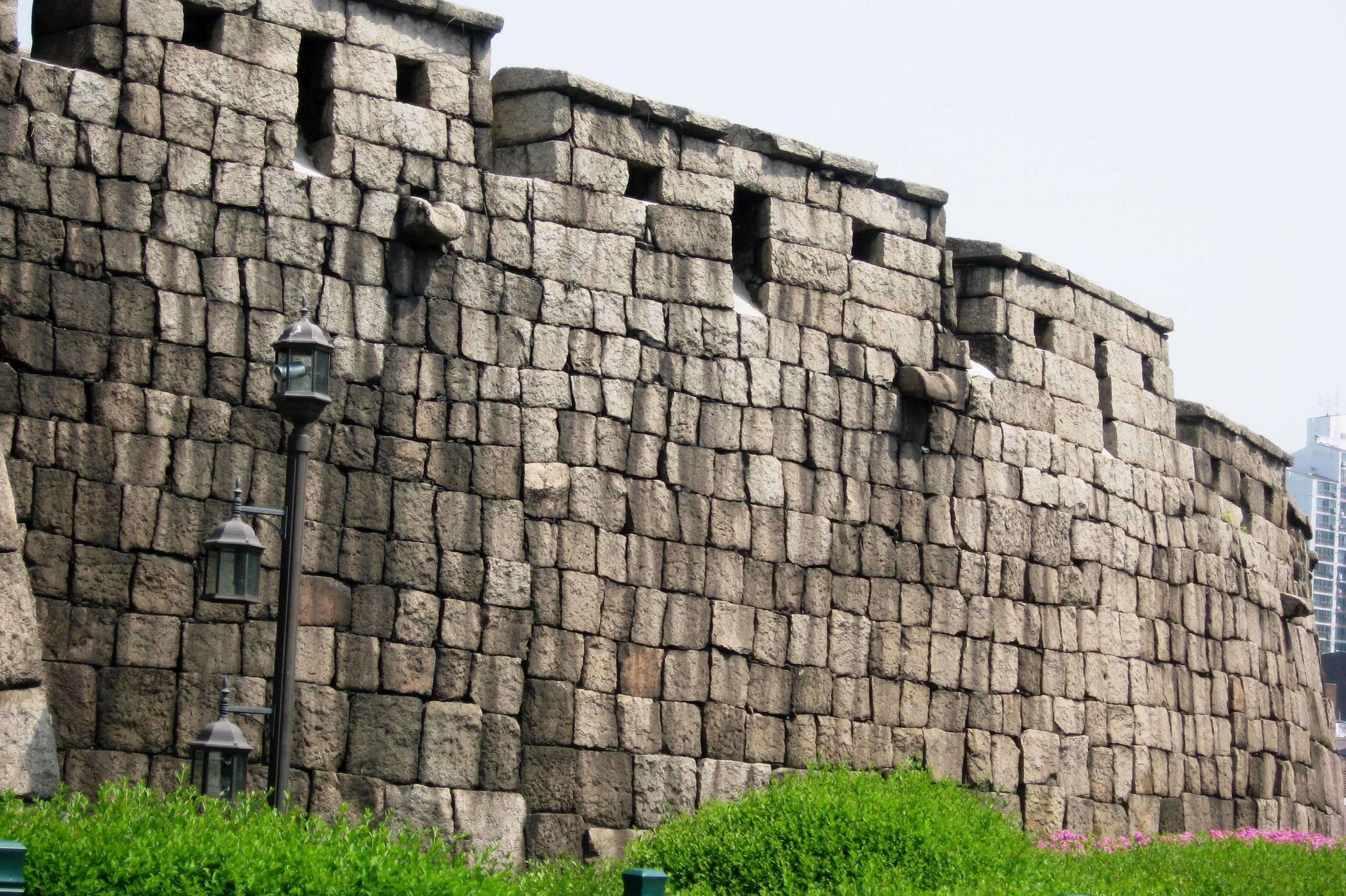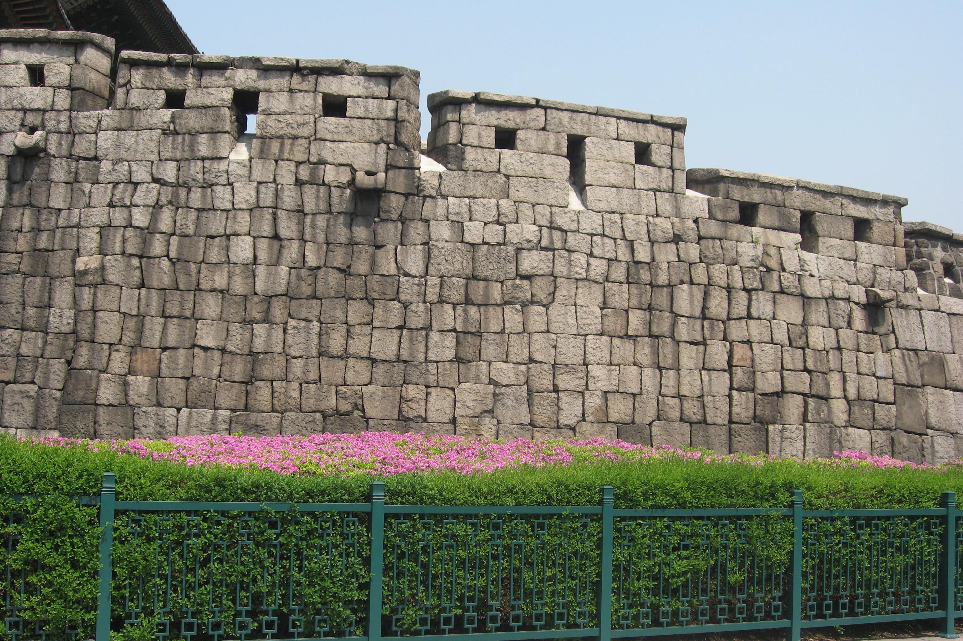 城壁のアップです。南大門の城壁を取り去ったのは日本の統治時代のこととされますが、楼門にはやはり城壁が必要でしょう。