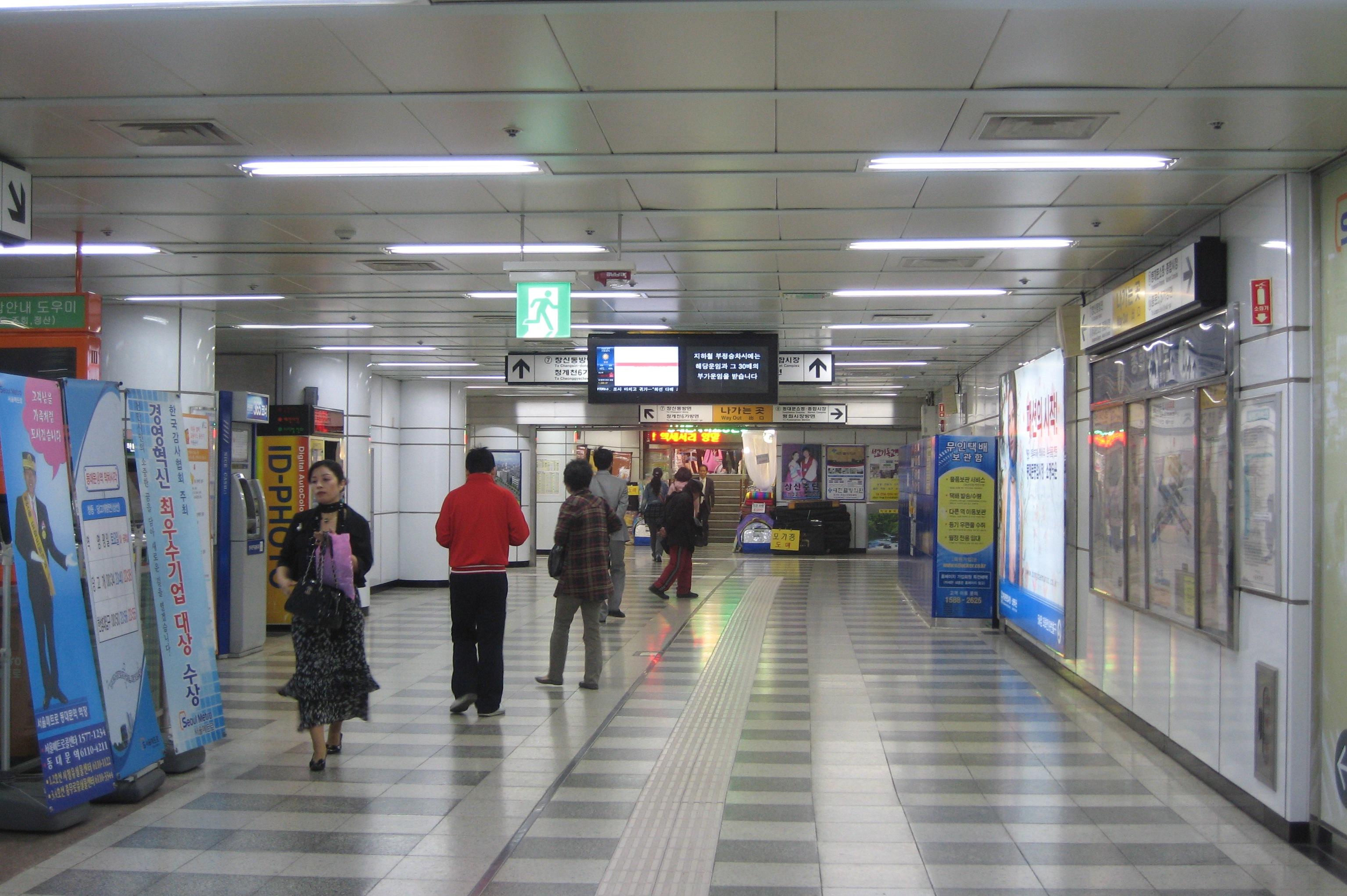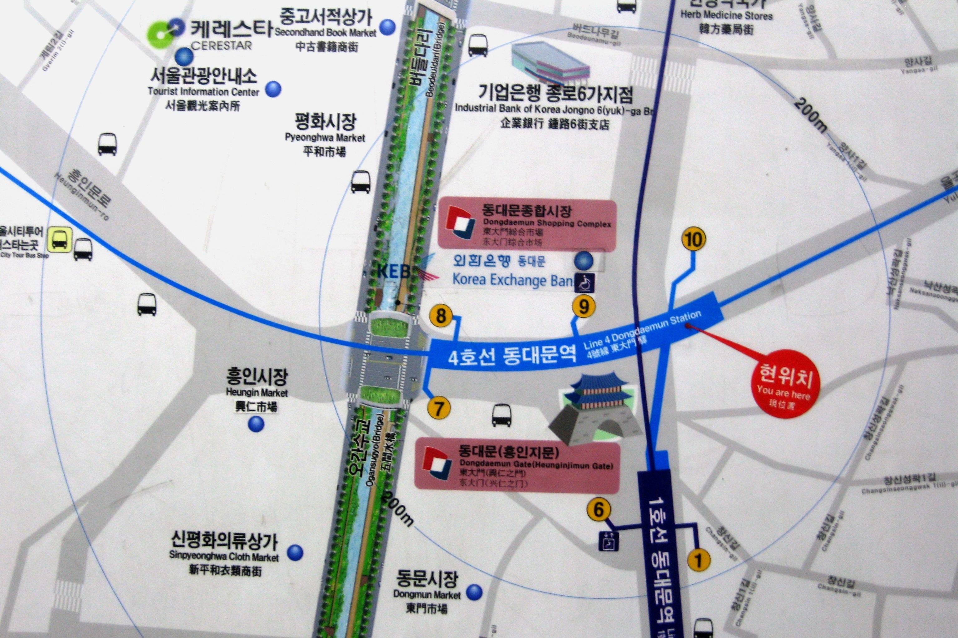 朝からずっと歩いていましたので、少しお腹が空いてきました。お比呂土器にもなりましたので、明洞へ地下鉄で移動することにしました。ここはまだ東大門駅です。