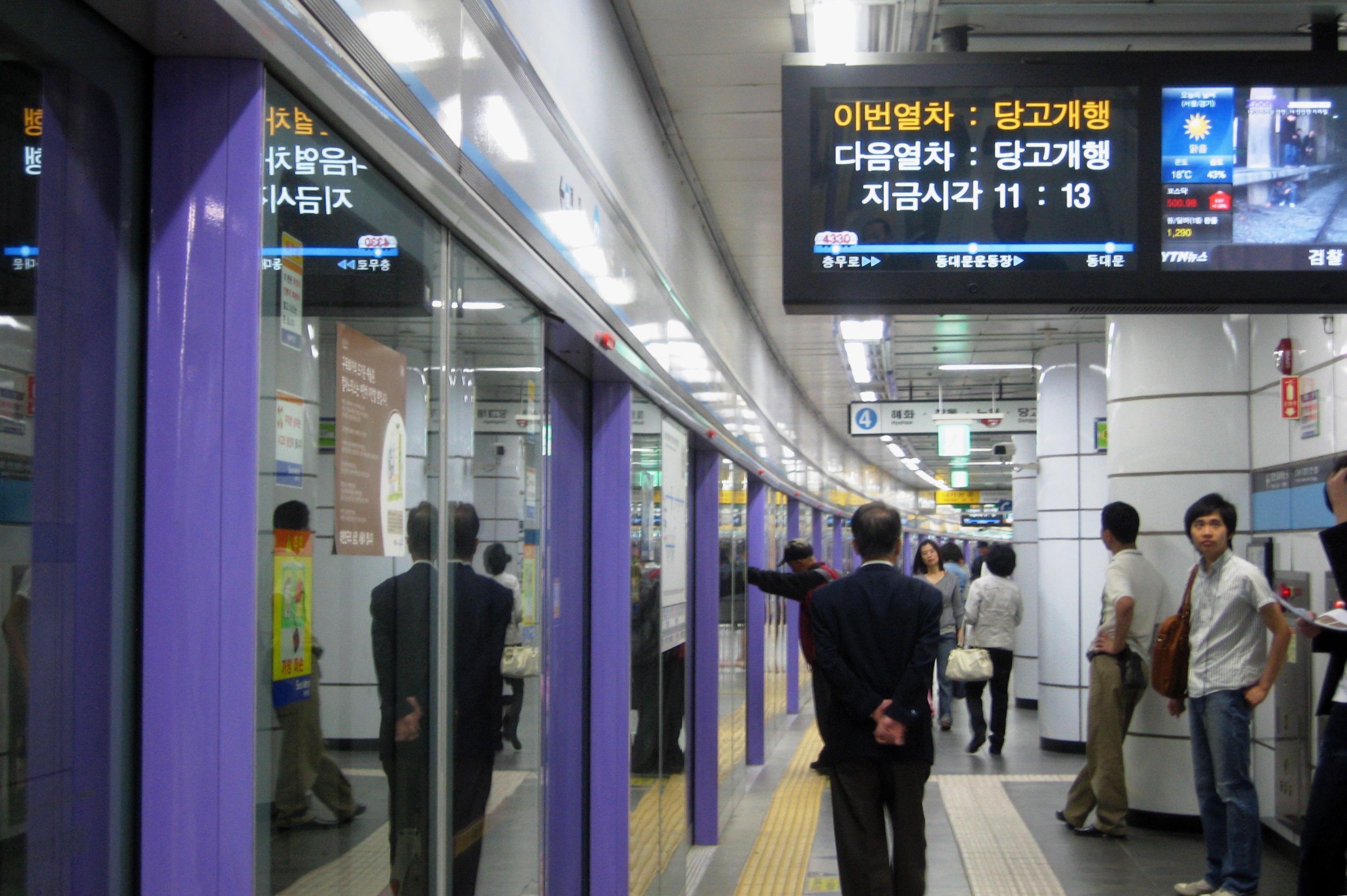 同じく地下鉄構内の光景です。韓国の地下鉄は、深夜でも治安に問題がなく、気軽に利用できます。ソウルでの移動は、ほとんど地下鉄利用です。