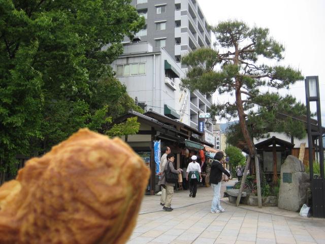 たい焼き購入。天然もの(一つずつ焼く鯛焼き)で、形の悪いものは半額で買えます。
