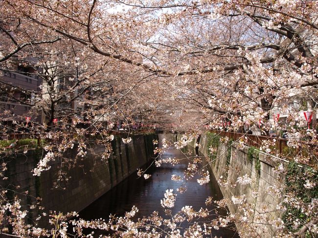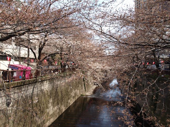 お花見で毎年訪れる中目黒。<br />もう葉っぱが出始めてましたが・・・。