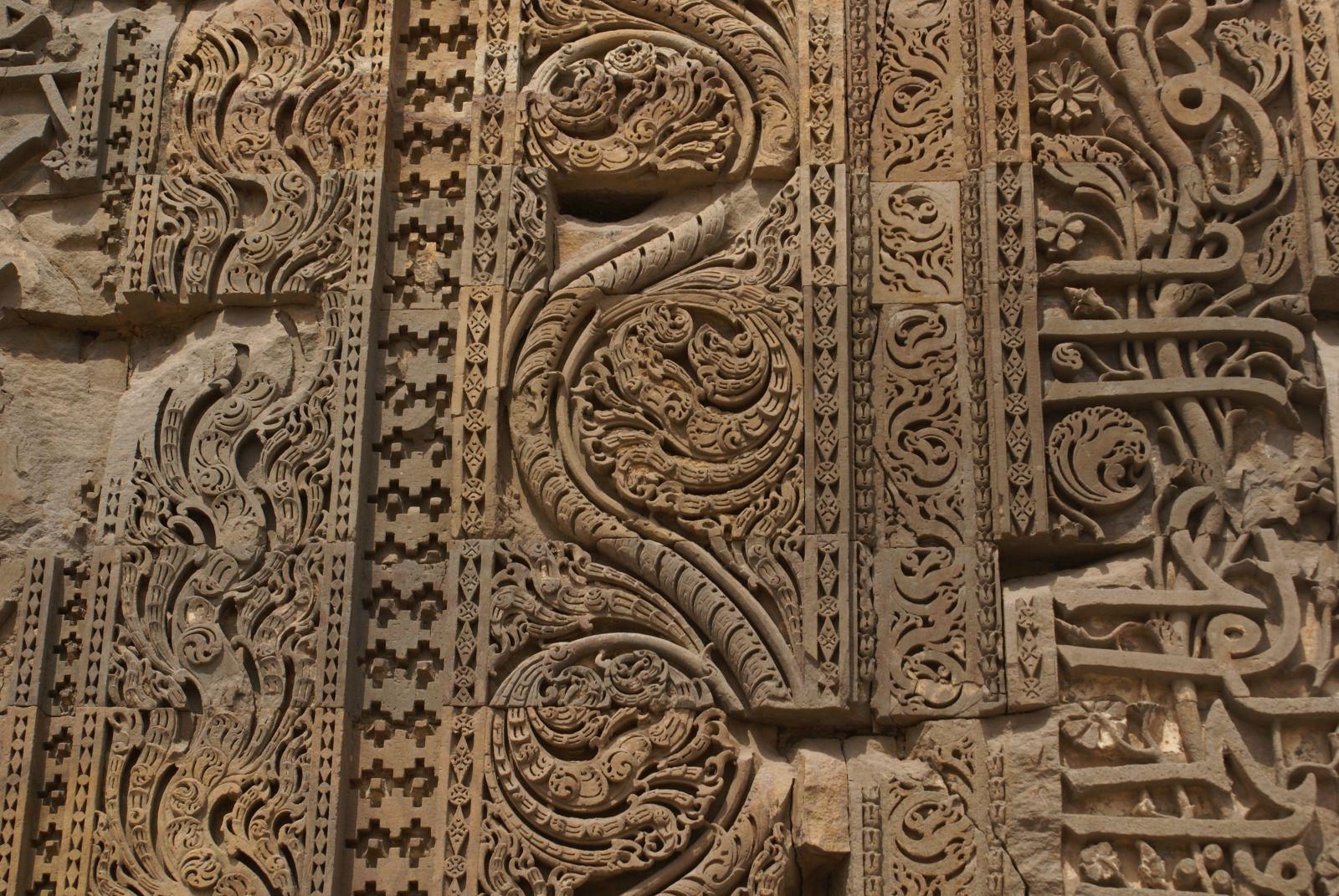 奴隷王朝の建国者であるクトゥブッディーン・アイバクによって、クワットゥル・イスラーム・モスクに付属して建てられたものである。おそらくはヒンドゥー教・ジャイナ教の寺院などを破壊し、その石材を転用して制作されたもので、建築に携わった職人もヒンドゥー教徒であったと推測されている。そのため、ヒンドゥー様式とイスラーム様式が混在した様式となっている。『ウィキペディア(Wikipedia)』 -