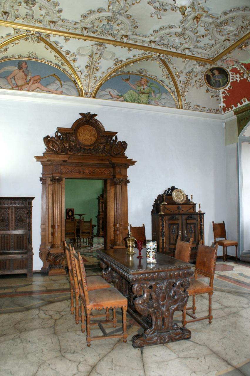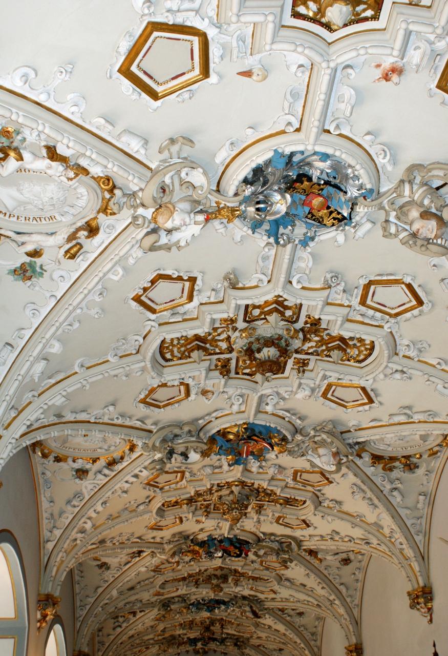 フレデリック館の上階通路の天井は 飾られたスタコ。
