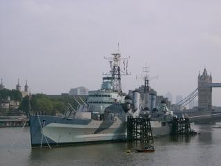 テムズ河ソイを歩くと「HMSベルファスト号」が停泊しています。