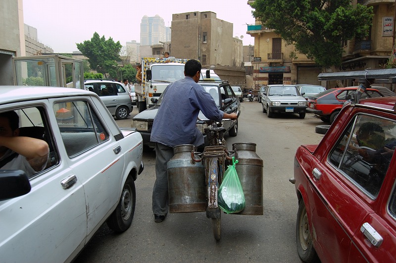 カイロの街中。車が色んな方向を向いていて何がなんだかわからなくなっています。自分で運転するのは絶対ムリだろうな…。