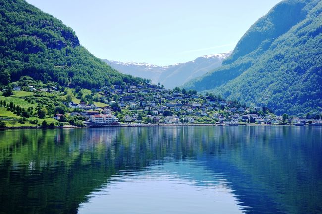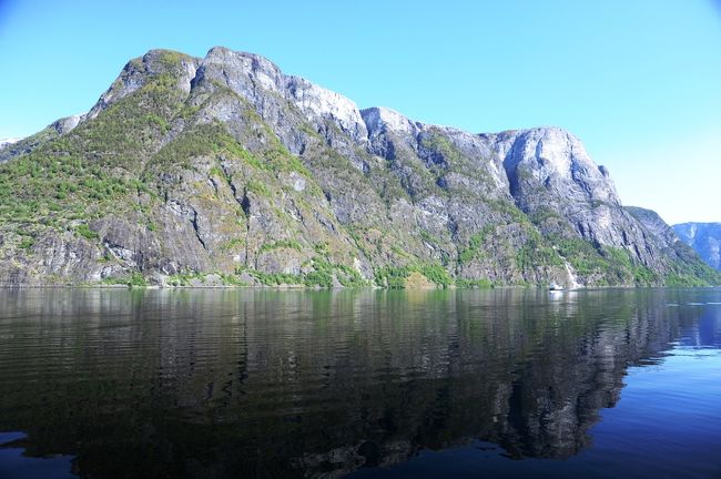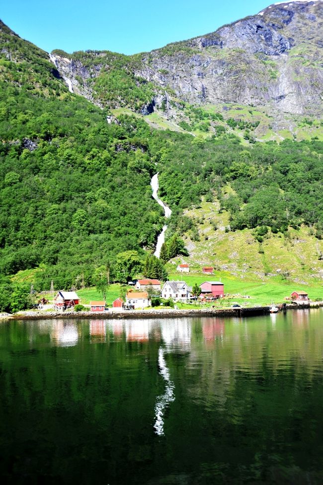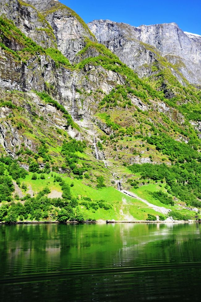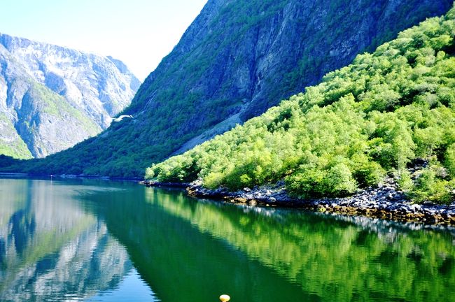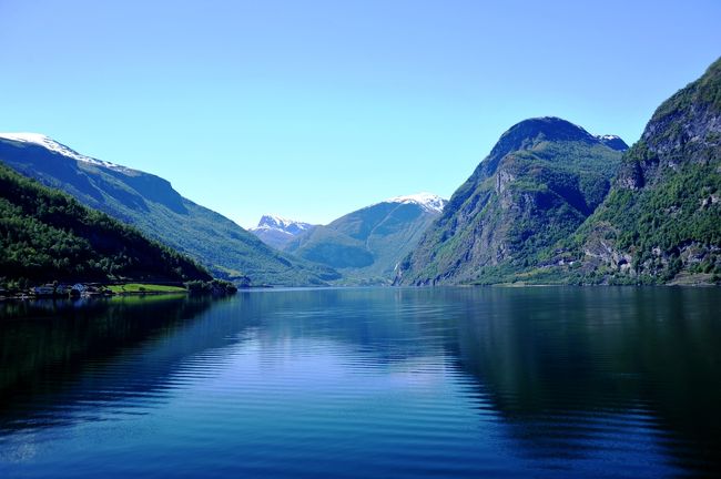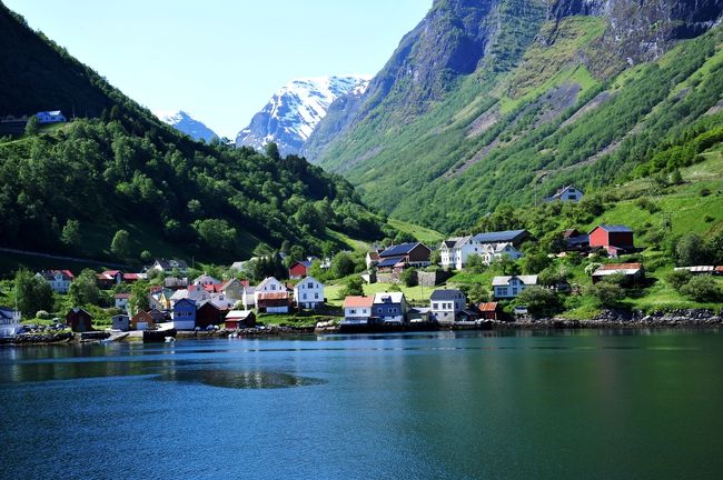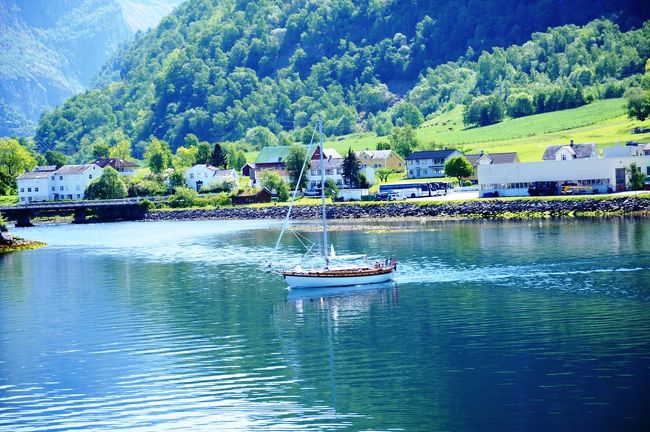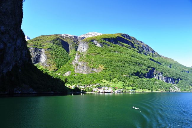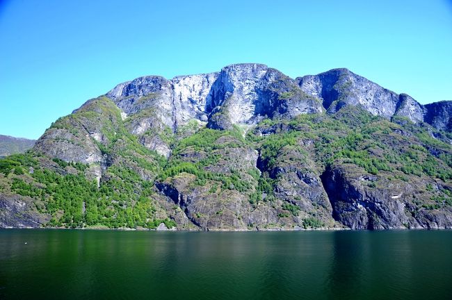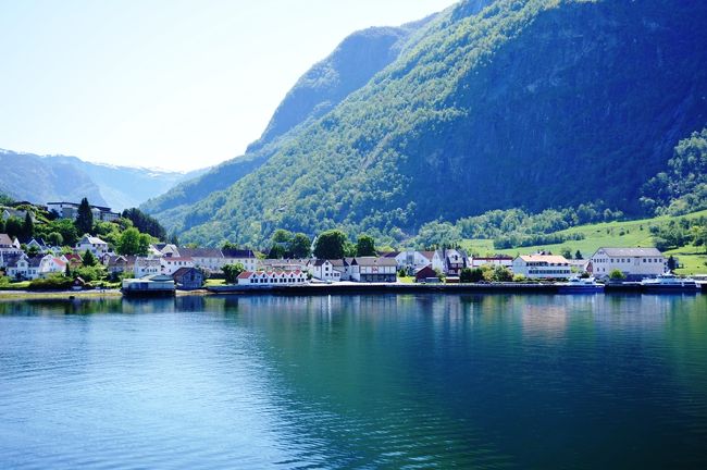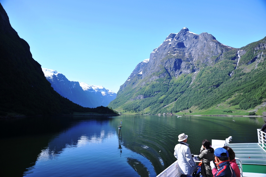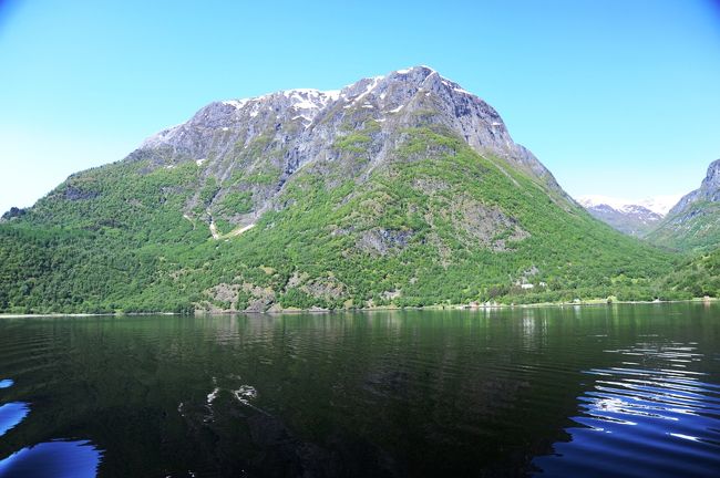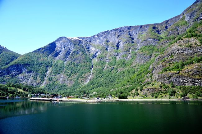 ソグネフィヨルドのスタート地点、グドヴァンゲルに到着です。いよいよこのツアーのハイライト、ソグネフィヨルドクルーズです。ソグネフィヨルドは全長204kmの世界最長・最深で、アクセスのよさや変化に富んだ風景を楽しめることから最も人気のあるフィヨルドです。