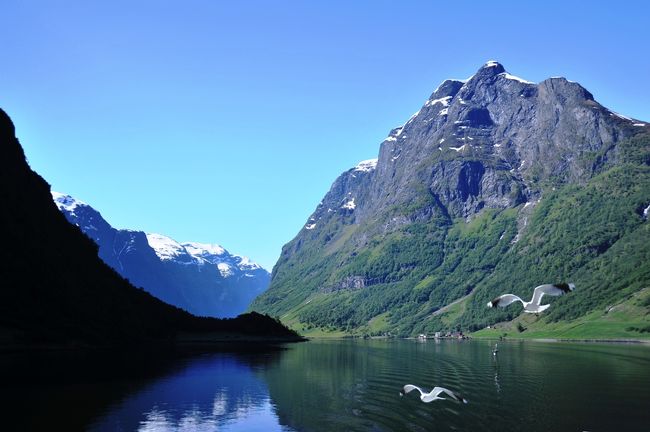 屹立した山々、山から落ちるいく筋もの滝、狭いフィヨルドに点在する小さな村、これが海かと思うほど静かな海、客船に集まるかもめ、それぞれのすべてがクルールジングの主役です。