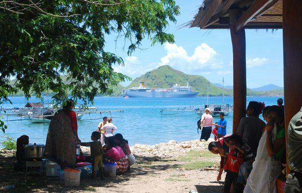 マカッサルの観光の翌朝はコモド島に下船しました。