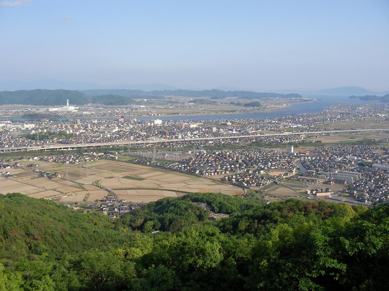 帰りに車でのぼった「芥子山」から会場を見る。河川は吉井川