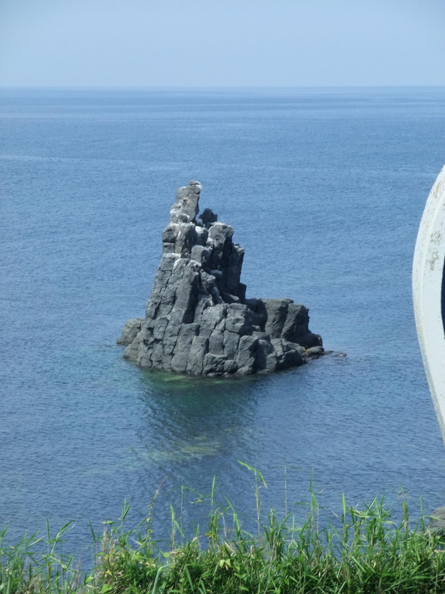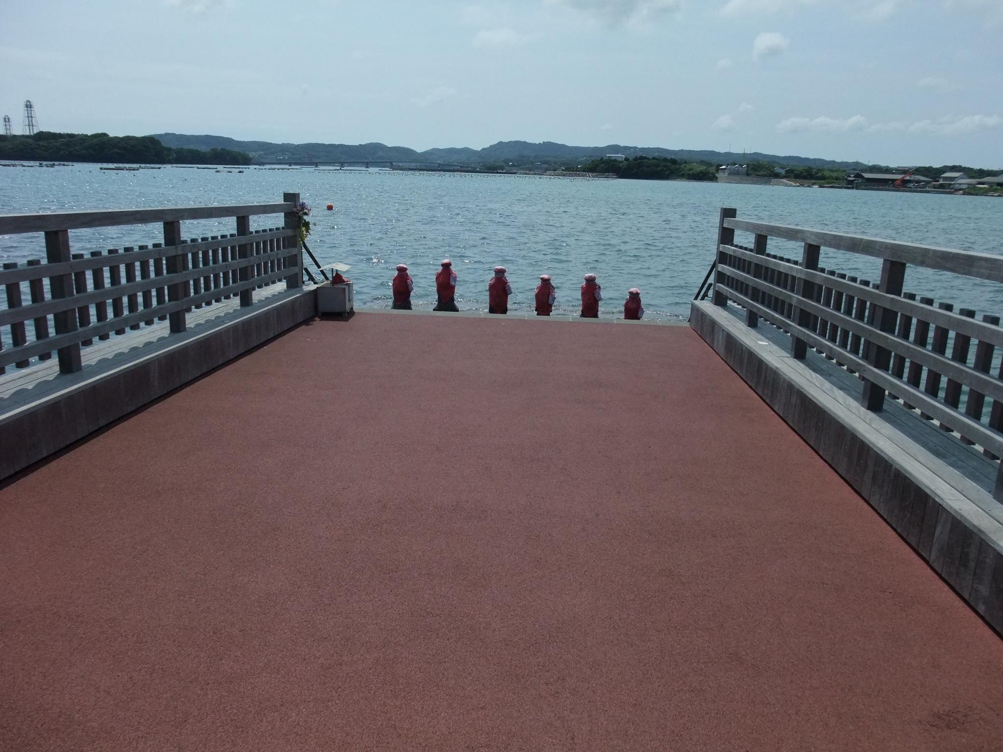 イルカパークから、お土産を買うために再度土肥製菓に寄る。そこから、左京鼻~はらほげ地蔵に向かうが、橋があったのでちょっと渡ってみることに。青嶋公園がある。