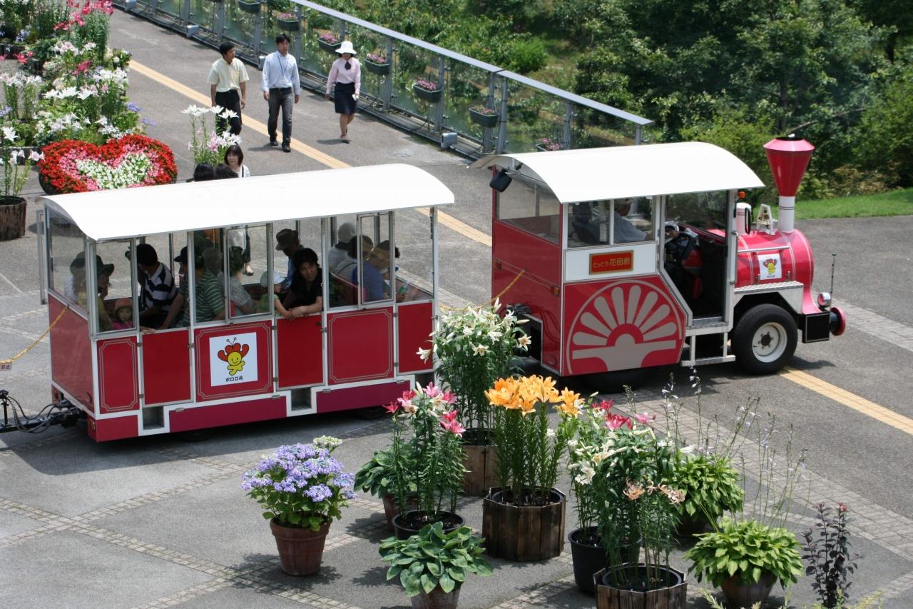 総面積50haの広大な園内には、花壇の他に「フラワードーム」や展示館、日本初の全長1kmの屋根付「展望回廊」など、天候や季節に左右されず一年中花が楽しめる魅力あふれる施設がたくさんあります。 -