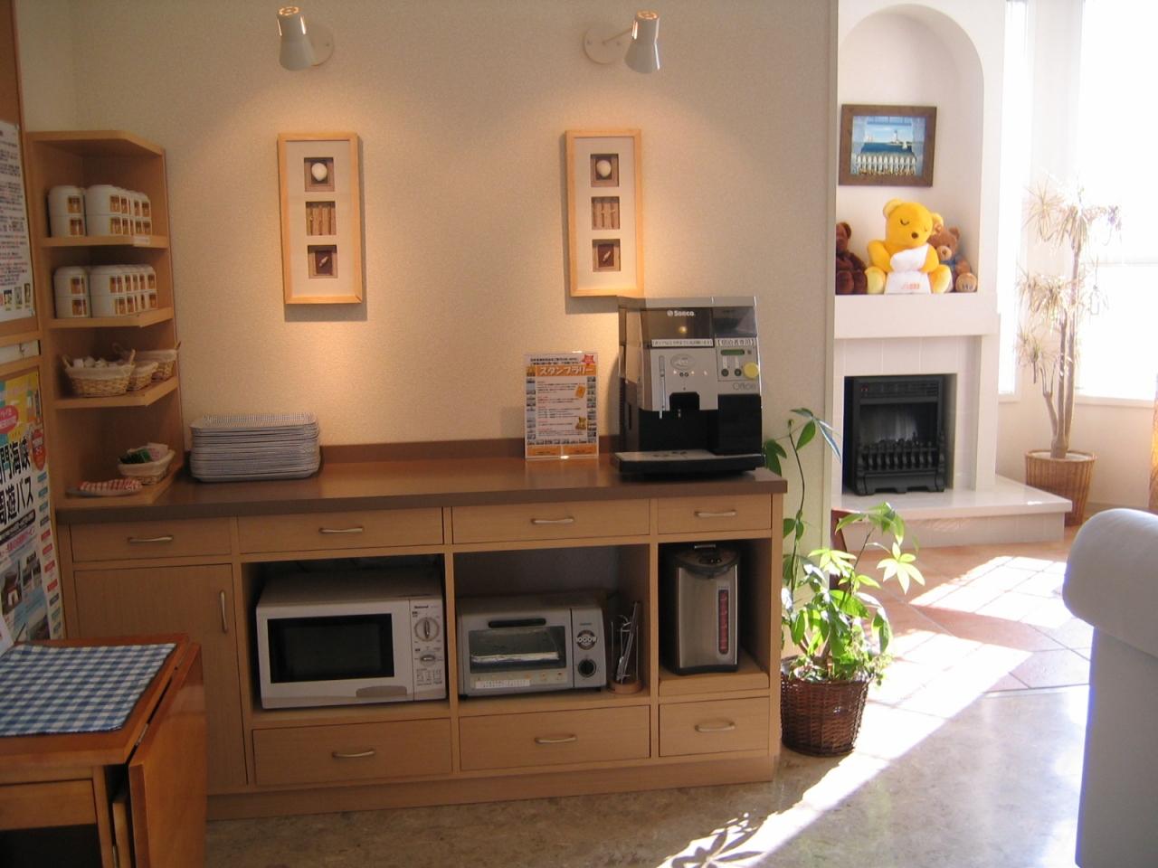 電子レンジとトースター、湯がある。