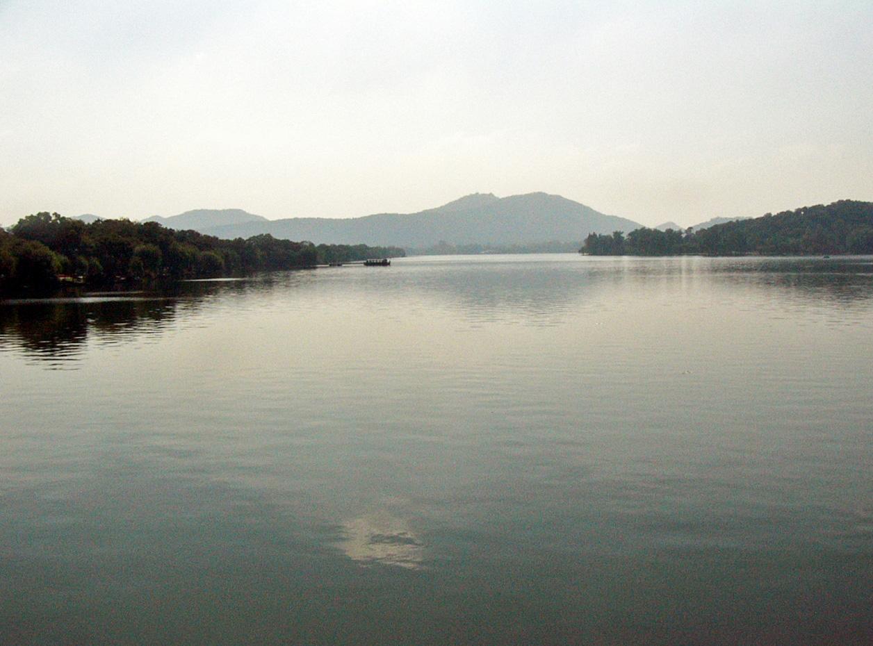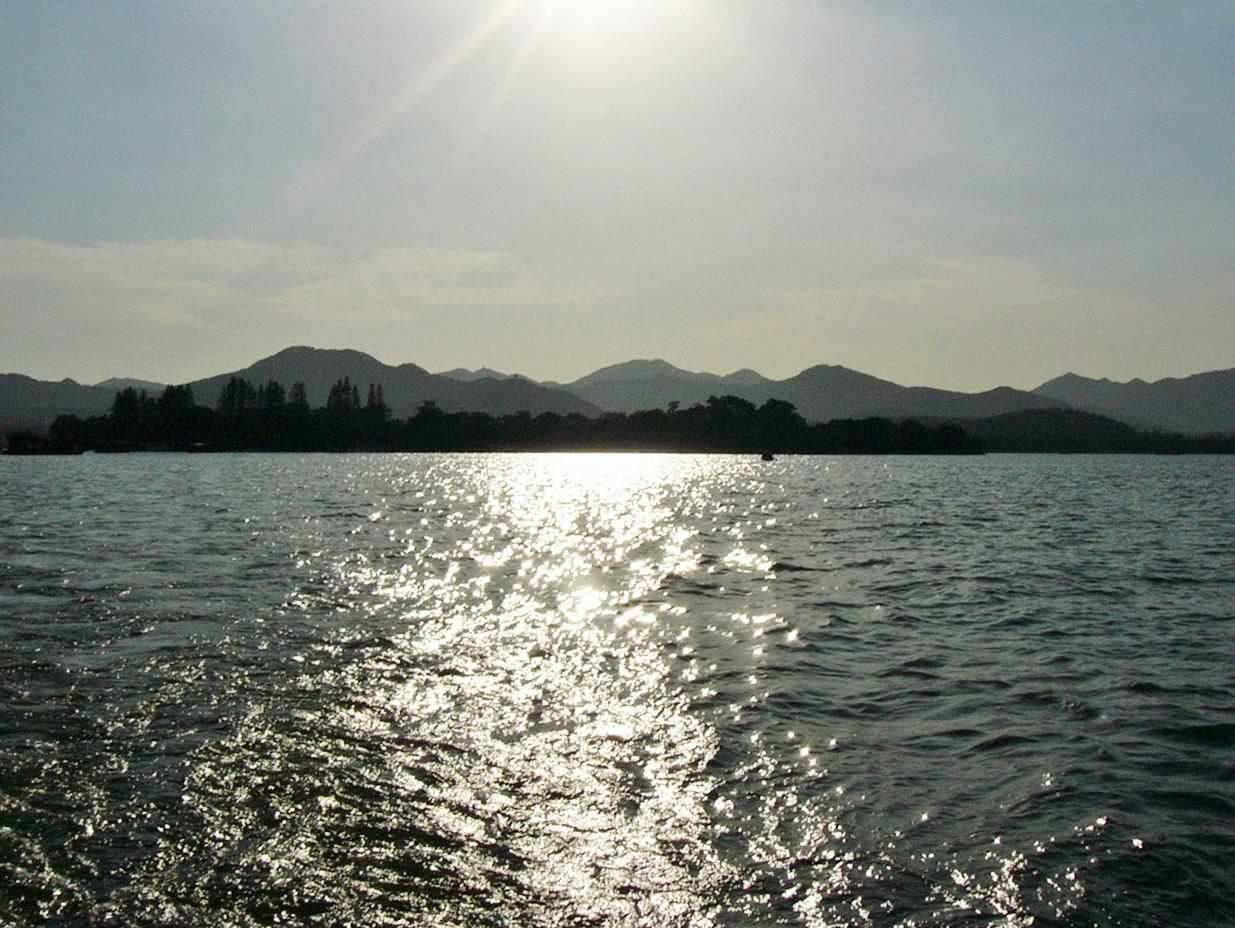 蘇軾は西湖を絶世の美女西施にたとえ、雨の日の西湖は夜衣のまま寝乱れ髪も妖しく、婉然と横たわる西施の姿を彷彿させ、晴れた日の西湖は、眉をぐっと引いてきらびやかに盛装した西施の絢爛たる姿を思わせ、共に人びとを魅了してやまないと歌った。この詩は西湖の持つ詩情を見事に描き出した古今の最高傑作といわれています。