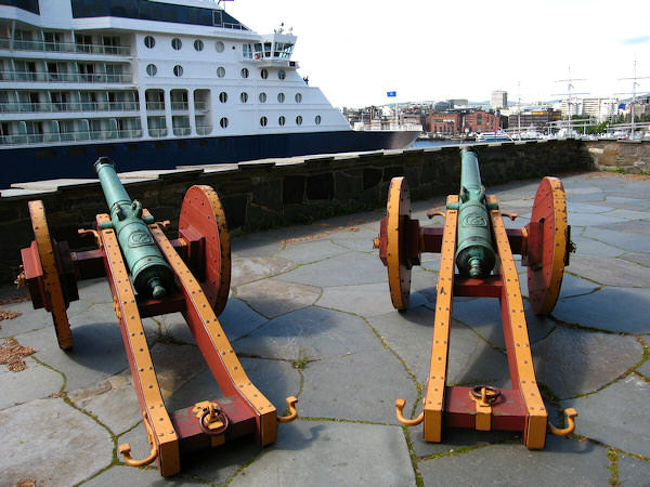 アーケシュフース城では、目の前に大きな豪華客船が停泊していて、距離の近さに驚きです、停泊中の船は、セレブリティ・クルーズのコンステレーション、9万トンです。