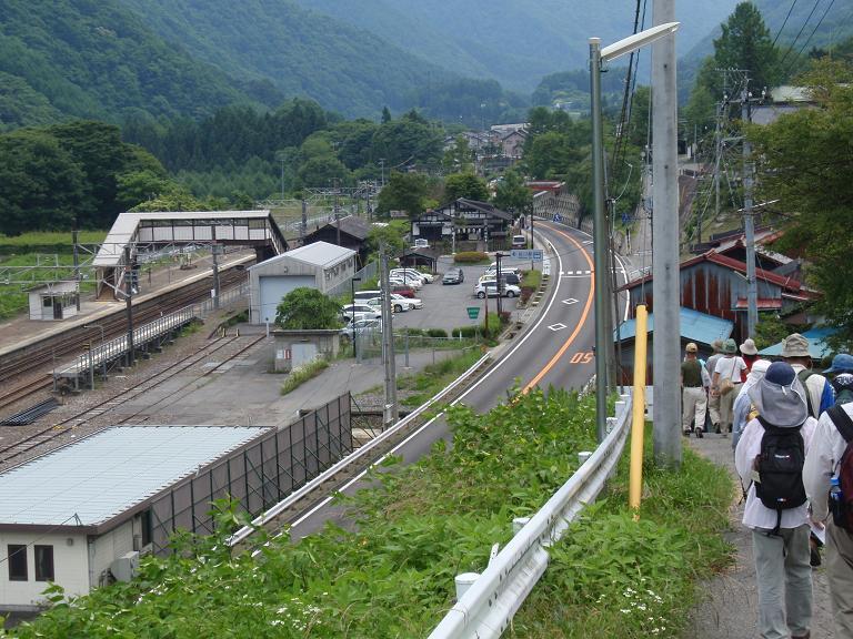 【あの先に見える、カーブを越えると贄川駅(にえかわ駅)の筈。