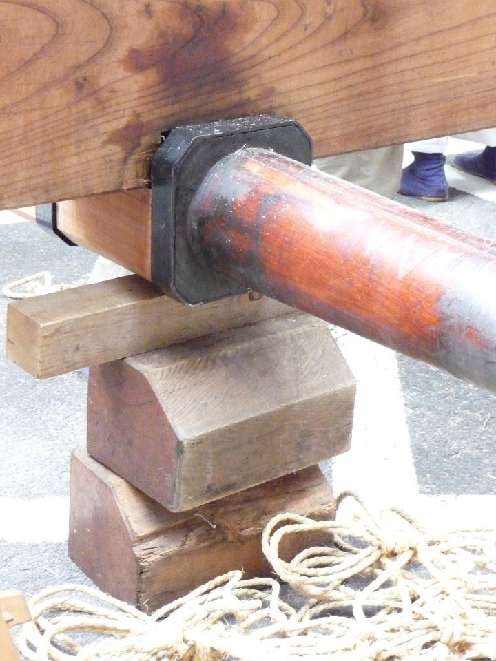 昨日(10日)から鉾建てが始まったのですが、すでに真木(芯棒)立ても済んでいます。
