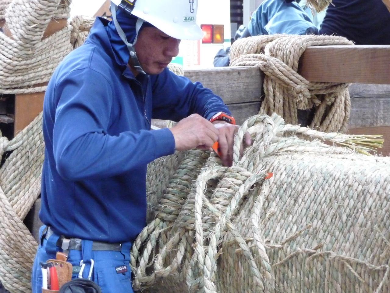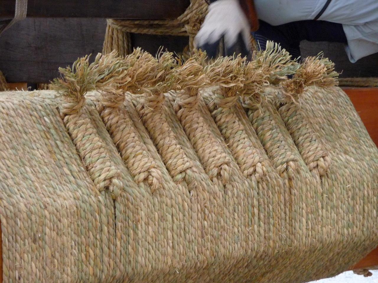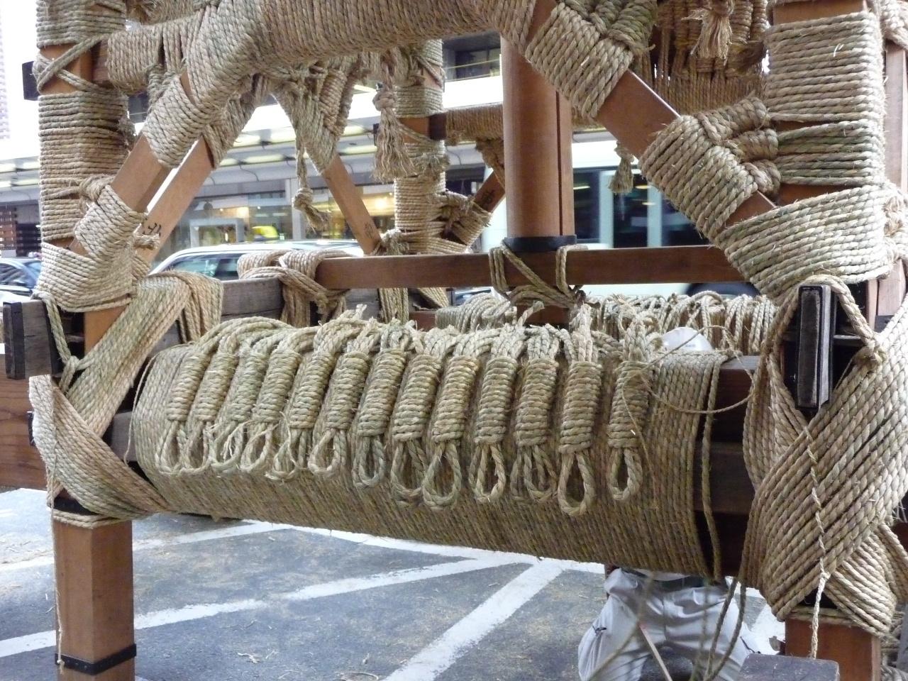 作業がだいぶ進んでいます。これは縄絡みをさらに補強するための飾り結びをしているところです。