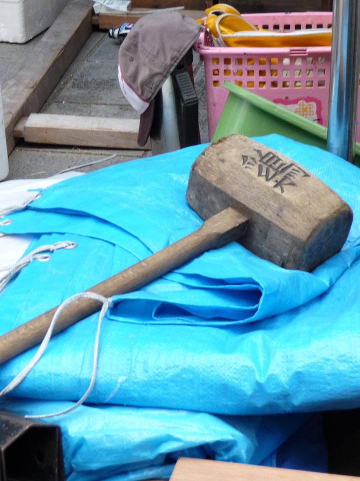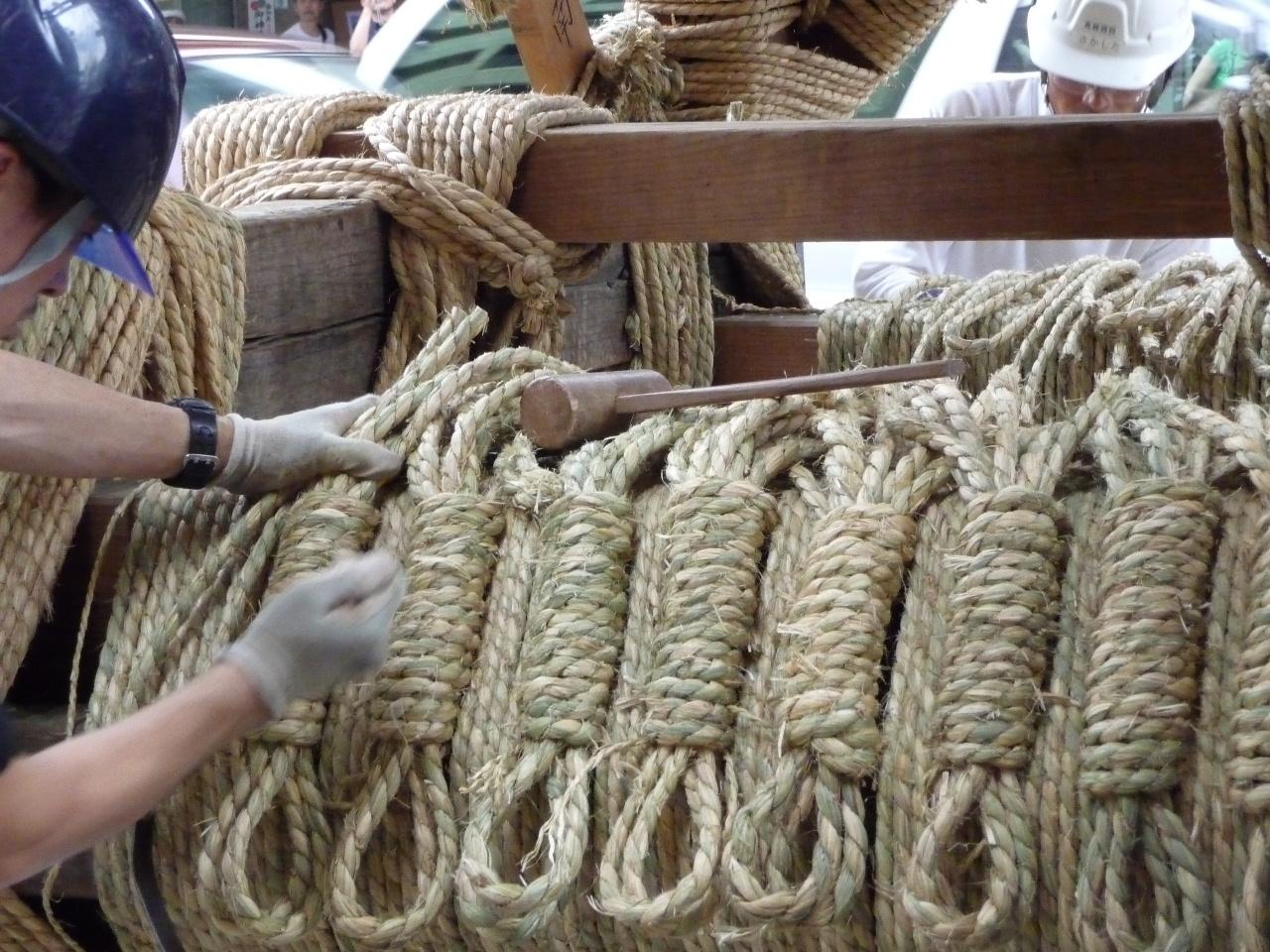 木槌を使って縄を絞めていきます。