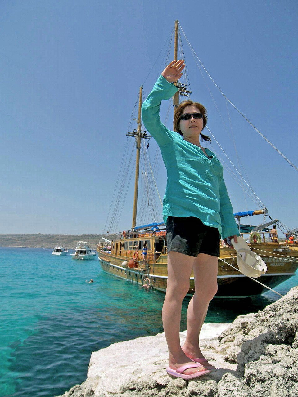 今日はフェルナンデス号という帆船でゴゾ島とコミノ島とブルーラグーンクルーズです。先日の3島クルーズで一緒だった帆船です。前に来た時はシャルロット・ルイーズ号と言う帆船でしたが、現在は使われていないのかスリーマーに停泊している姿は痛々しいものがありました。この時のクルーズは船のクルーが面白い人たちばかりで、その当時日本人は珍しかったようで、みんなで記念写真を撮ったり…、思い出が詰まっています。クルーも変わってしまった帆船はスリーマーを出港して一路西へ進路を取ります。先日とは逆回りでゴゾ島に向かいます。午前中に1回海水浴があり、昼食を挟んで午後にブルーラグーンでもう1度海水浴出来る時間があります。何度来てもブルーラグーンでの時間は楽しいのもです。小学生の頃の夏休みの時と同じ気持ちになれます。