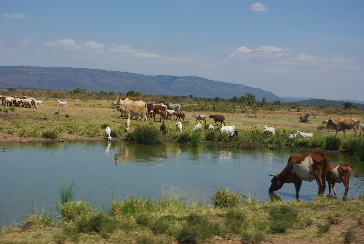 牛がいっぱいいるところには、必ず赤いマントのマサイがいました!