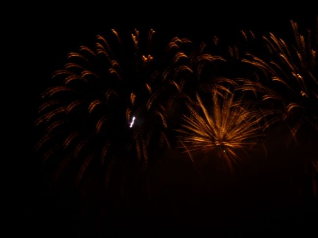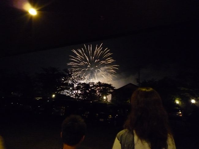 食事が終了とともに、外から「バンバン」音がしだしたので、何かと思って外をみると、偶然に大仁の夏祭りの花火の音でした、以後の画像は花火のみとなります・・・あしからず!
