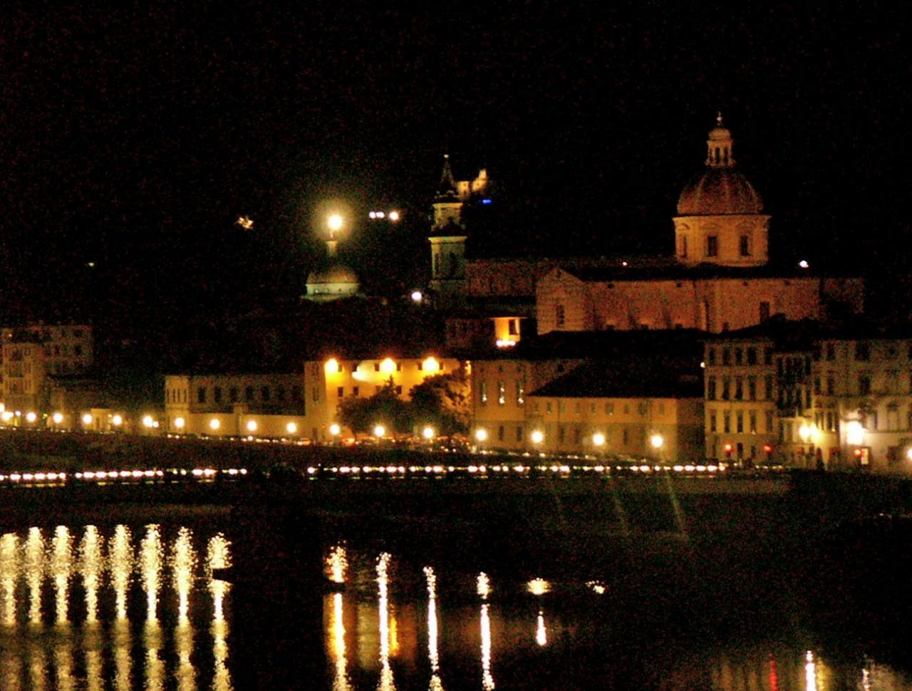 ホテルのテラスからのアルノ川の夜景は美しかったです。