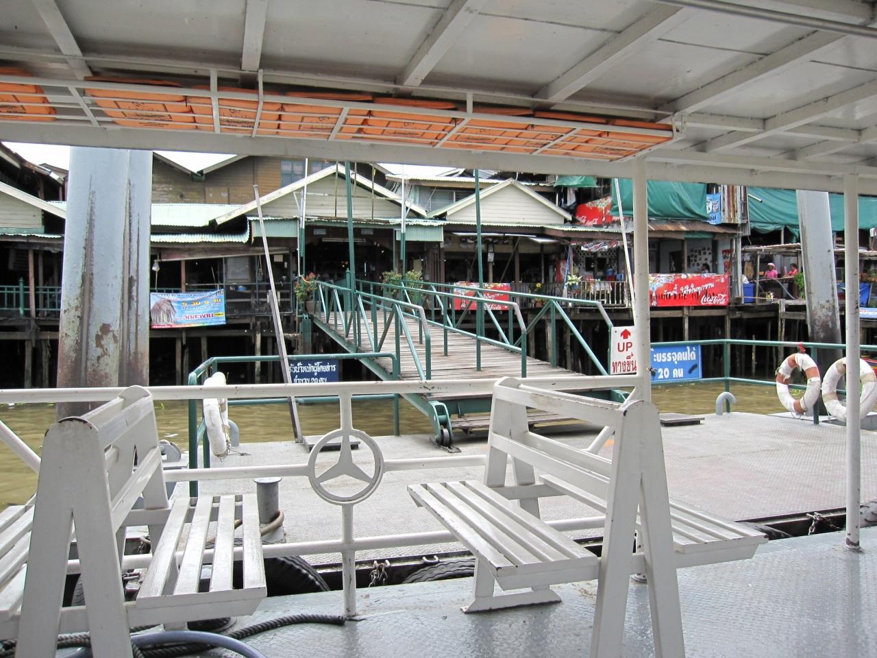 MRTとBTSを乗り継ぎ、サパーン・タクシン駅で降りたら、徒歩2分くらいのところにあるサートン船着場で、チャオプラヤー・エクスプレス・ボートに乗り込みます。