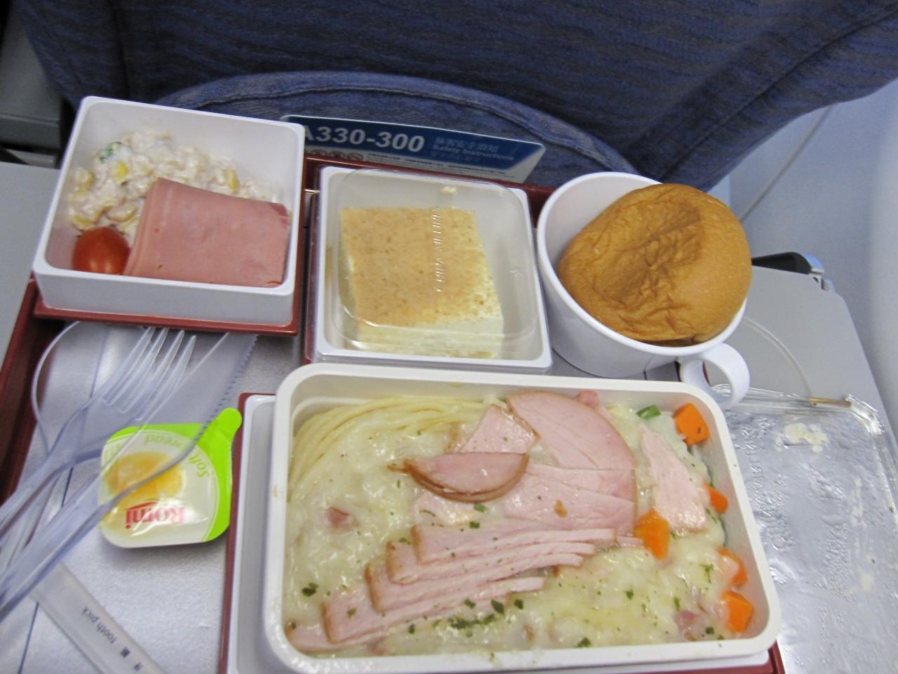 早朝から刺激的なものをたっぷり食べつつ、機内食もビールのおつまみ程度にいただきました。
