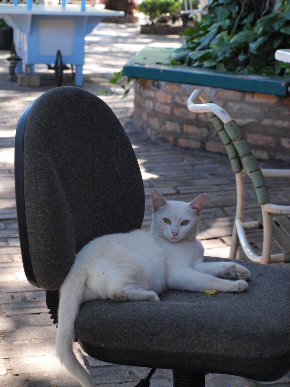 朝のシロネコが椅子で店番してました。