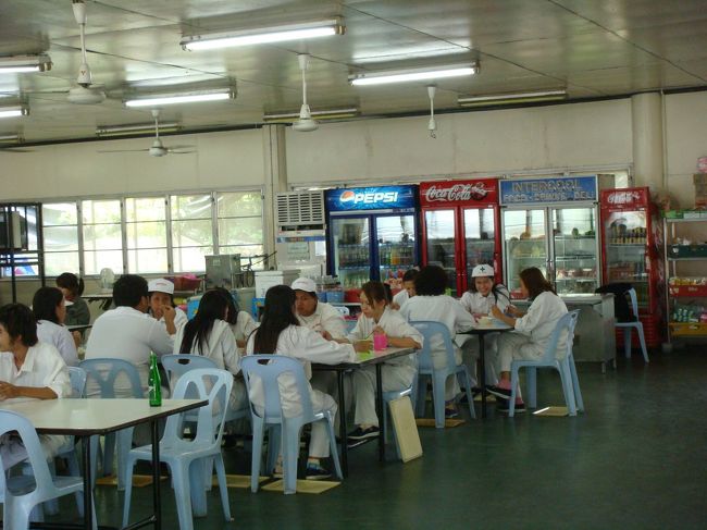 2日目は、バンコク郊外の工場へ移動し、職場は仕事の状況、更に、生活環境について派遣されている方とお話をし、工場の食堂で昼食をとりました。この食事、約150円程度で、グリーンカレーとチキン(サテのようなもの)更に、ペプシが付いています。